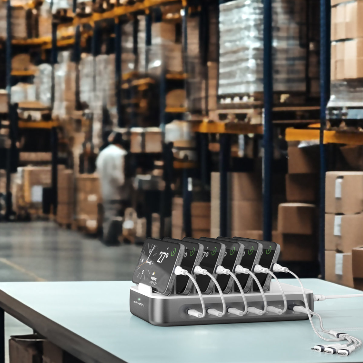 The 4smarts Team charging station brings order to your everyday life: all your devices - whether smartphone, tablet, wireless headphones, e-book reader or VR glasses - can be charged centrally. This saves space, reduces cable clutter and keeps your workspace tidy. This USB charging station is the perfect solution for keeping all devices in one place and within easy reach at the same time.