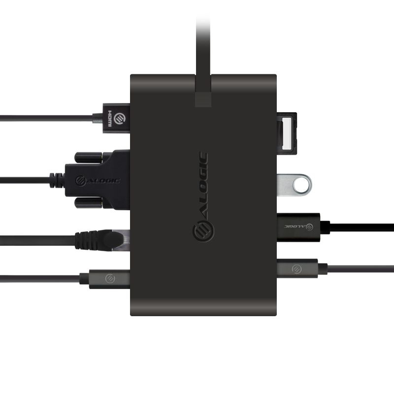 ALOGIC USB-C Travel Dock Pro/USB-C to HDMI 1.4 4K@30Hz + 1 x VGA + 2 x USB 3.0 + 1 x USB-C (Data) Giagbit Ethernet + SD + Micro SD Card Slot + USB-C With PD 100W