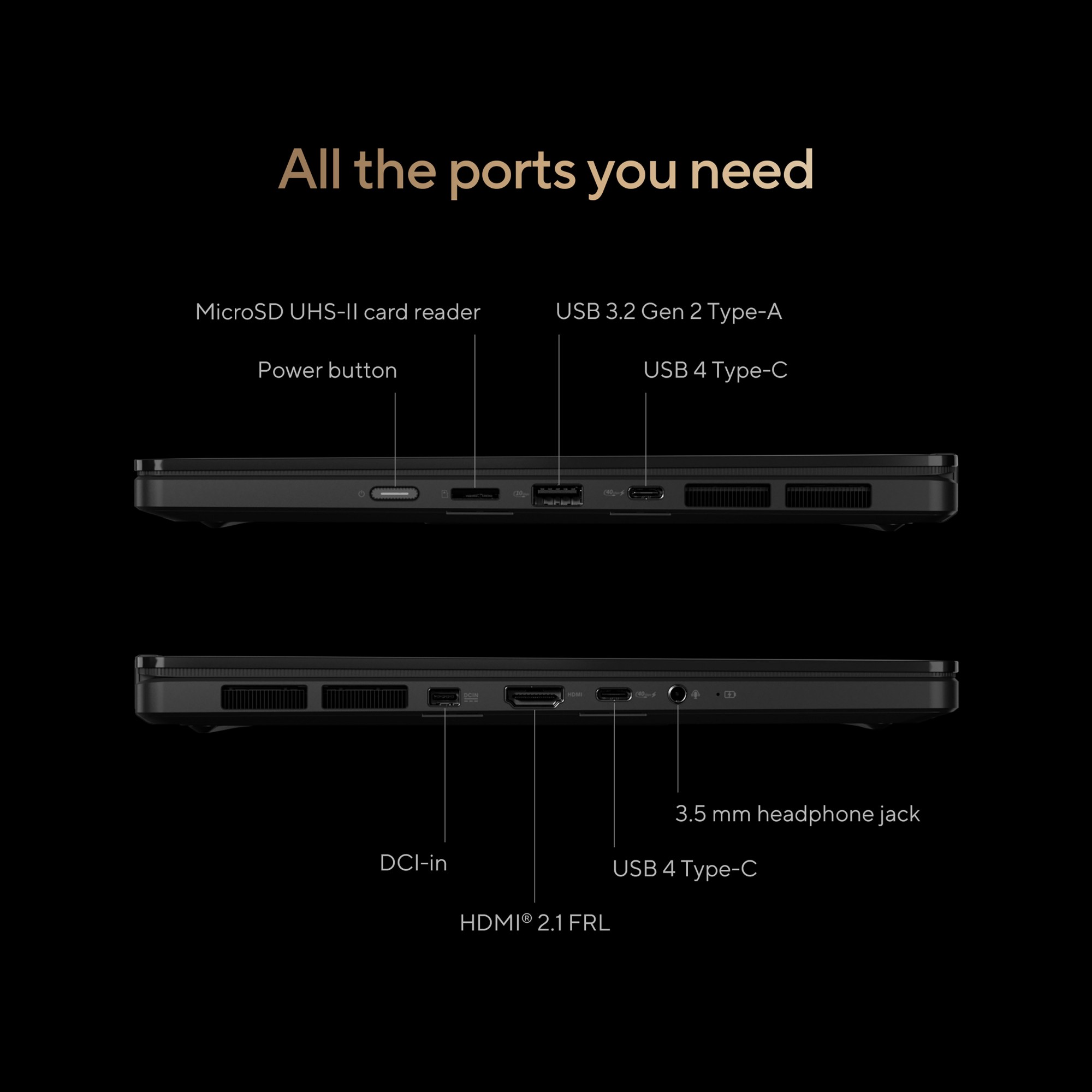Enhance productivity with extensive I/O ports, including twin 40 Gbps USB 4 Type-C for fast charging and external displays, USB 3.2 Gen 2 Type-A, HDMI 2.1, and UHS-II MicroSD card reader for quick transfers. Ultrafast Wi-Fi 7 ensures seamless connectivity anywhere.