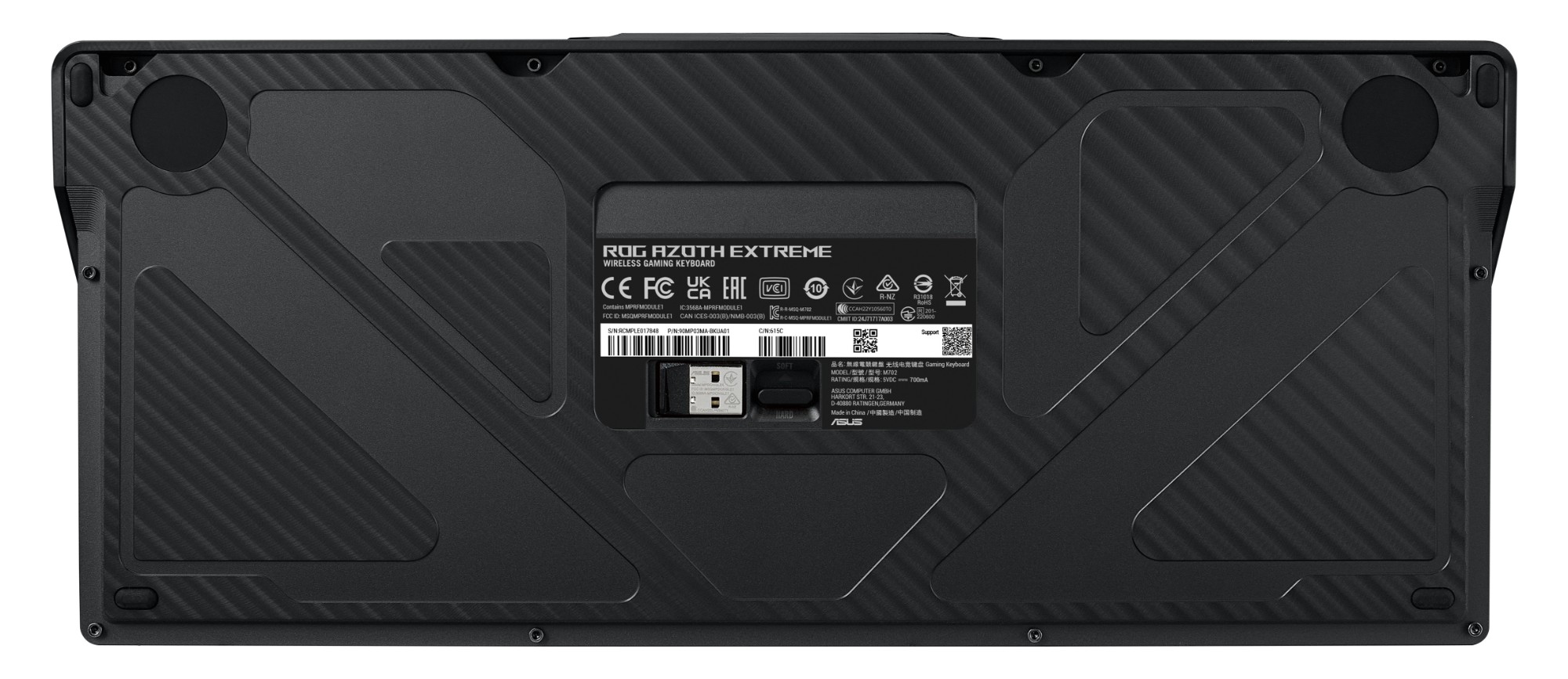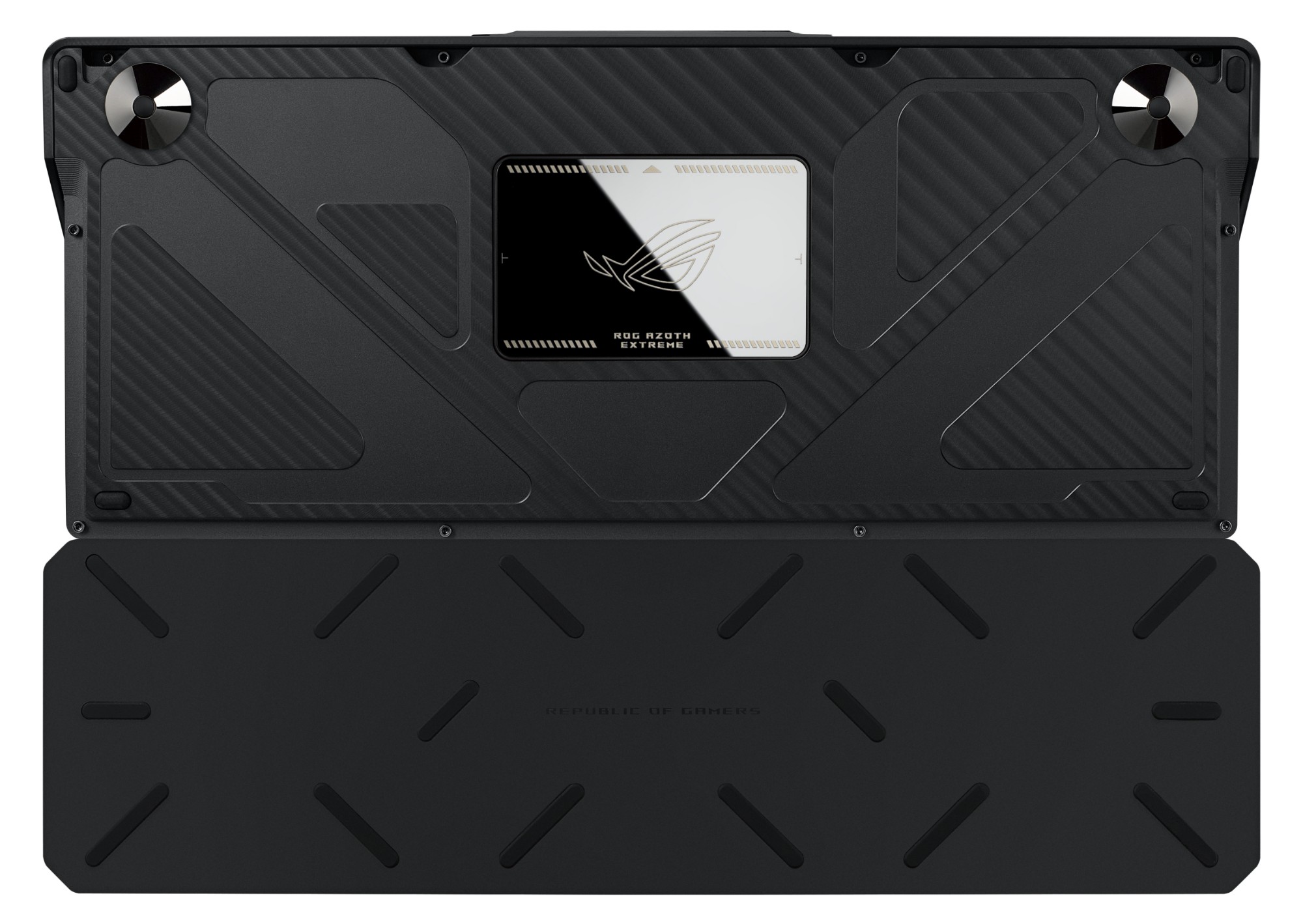 The ROG Azoth Extreme boasts premium aesthetics with its full aluminum-alloy chassis and metal frame, featuring a distinctive bladed pattern. The bottom chassis is achieved through 12 steps of intricate manufacturing processes, including sandblasting, anodizing, CNC machining, and more.