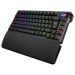 The ROG Azoth Extreme is a customizable 75% gaming keyboard with a premium aluminum-alloy chassis and metal frame. It features an 8000 Hz report rate with the ROG Polling Rate Booster and over 1600 hours of battery life in ROG SpeedNova 2.4 GHz wireless mode. The upgraded OLED touchscreen and three-way knob enable system monitoring and quick adjustments. The carbon-fiber positioning plate ensures a crisp typing sound, while three dampening layers absorb vibrations. An adjustable gasket mount with a paddle switch offers two typing preferences.