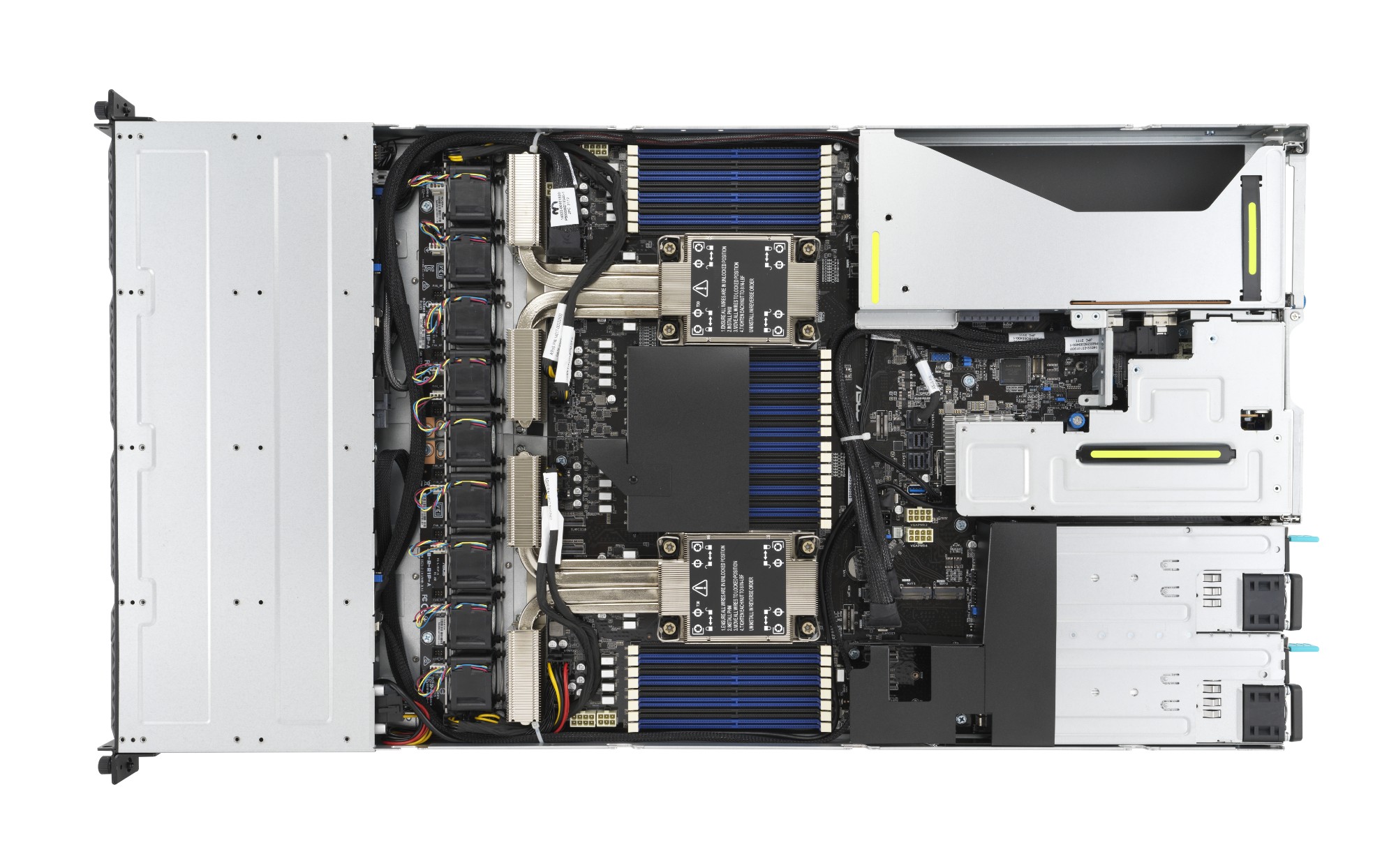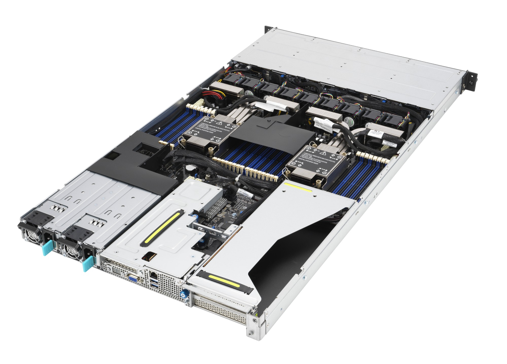 1U dual-socket server powered by 3rd Gen Intel Xeon Scalable processors that supports up to 32 DIMMs, one dual-slot GPU, 4 NVMe, four PCIe slots, one OCP 3.0, dual M.2 and ASUS ASMB10-iKVM.