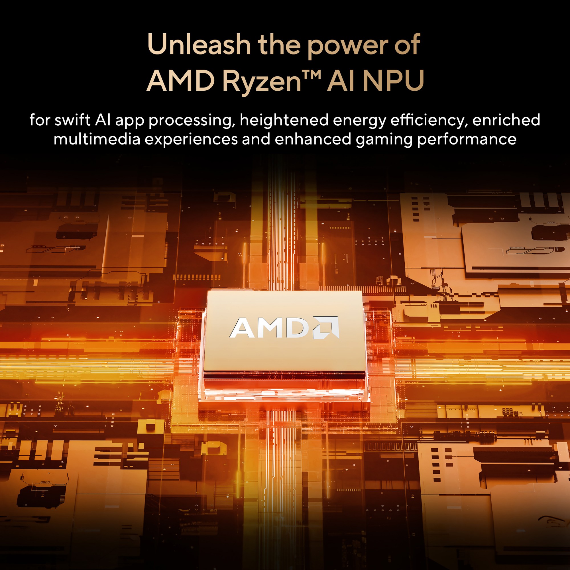 AMD Ryzen™ AI combines the power of AMD’s advanced ‘Zen4’ CPU cores, with XDNA 3 graphics technology and introduces an all-new computing resource, NPU. The NPU is designed to seamlessly delivers enriched AI experiences such as collaboration, enhanced productivity through local AI assistants, and superior video editing quality. <br>Additionally, the NPU is incredibly efficient, which means you can enjoy AI enhancements on-the-go, without sacrificing long battery life. It enables smooth multitasking and can free up the CPU and GPU to concentrate on their respective strengths.