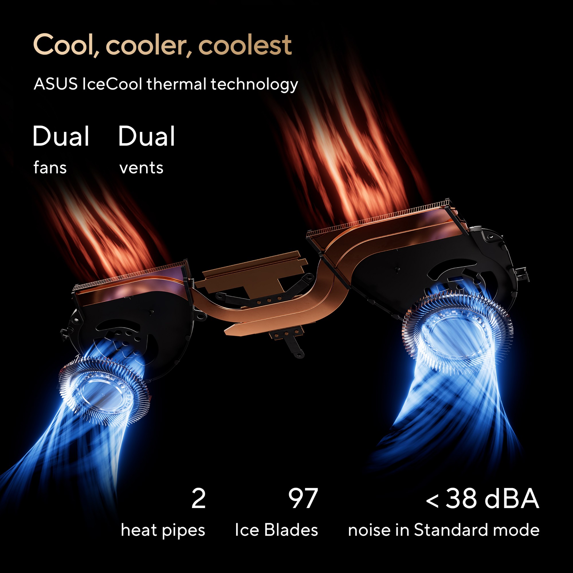 Worried about your laptop running too hot? Rest assured, ASUS IceCool thermal technology ensures that ASUS Vivobook S 15 OLED keeps its cool under pressure, so it can smoothly handle even the toughest tasks without any performance reduction.