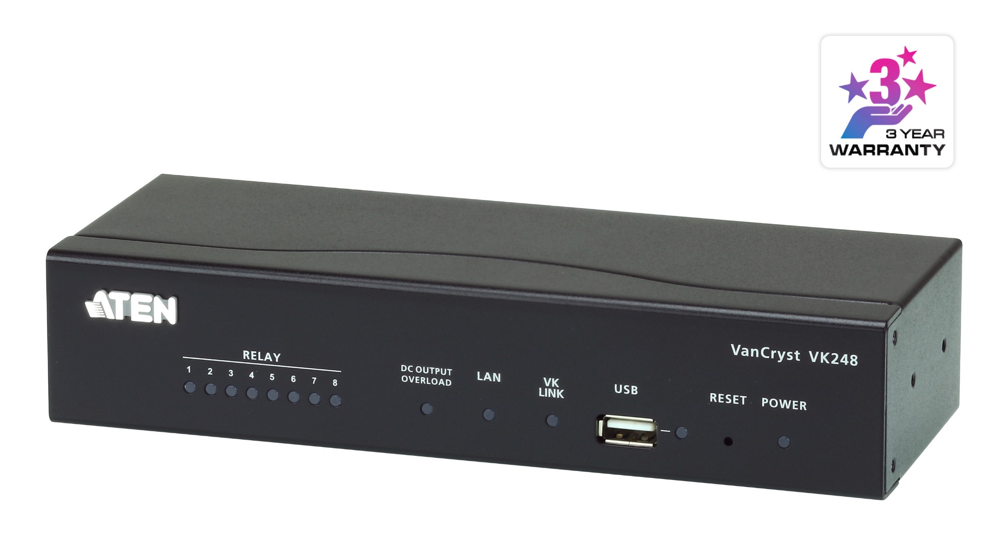 What’s more, the VK248 serves as a flexible expansion box of the ATEN Control System, enabling users to control additional equipment, such as screens, projector lifts and blinds, through an ATEN controller in any environments where more devices are required. With the advantage of Ethernet-based connection, the expansion box can be easily connected to controllers via LAN connection from a variety of locations across a network.