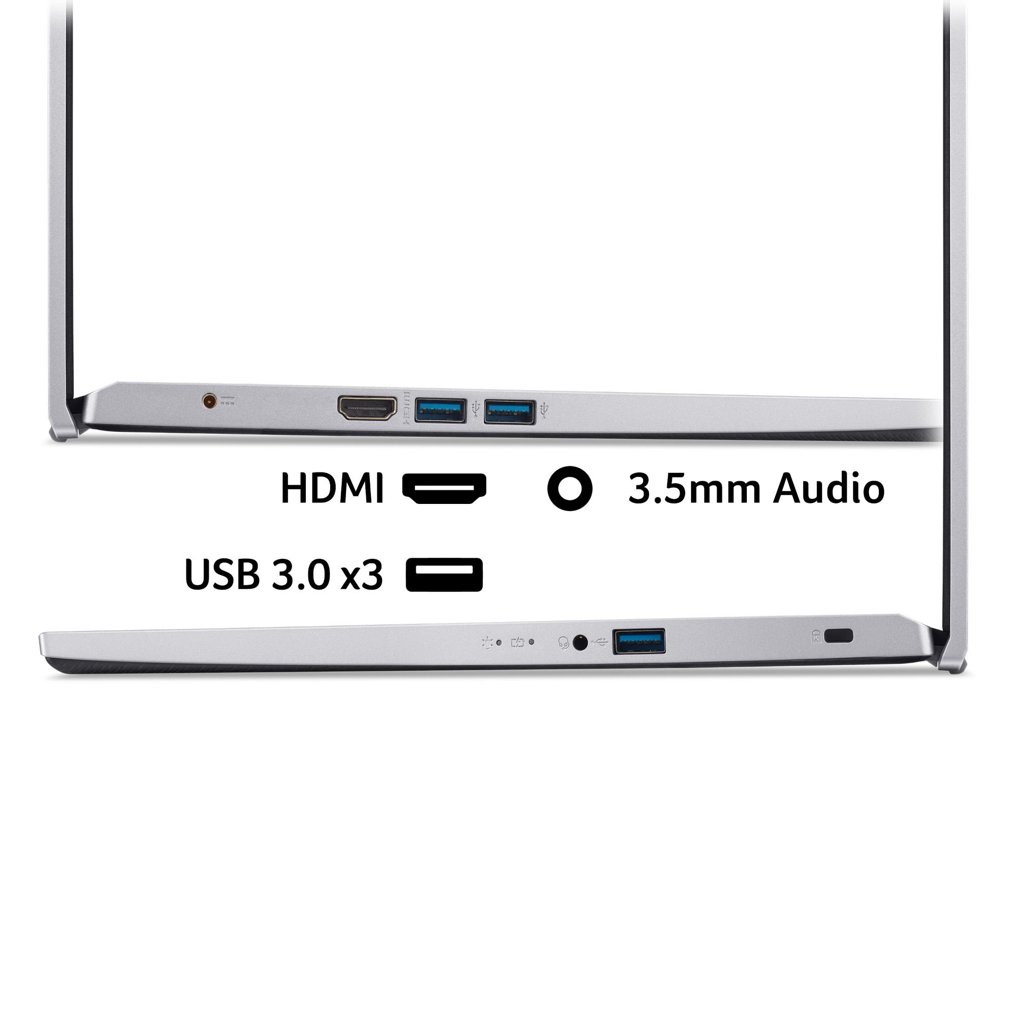 You get a complete array of connectivity options as standard with the Aspire 3. There’s integrated Wi-Fi 5 for getting online, as well as three USB ports and an HDMI connection for monitors or displays.