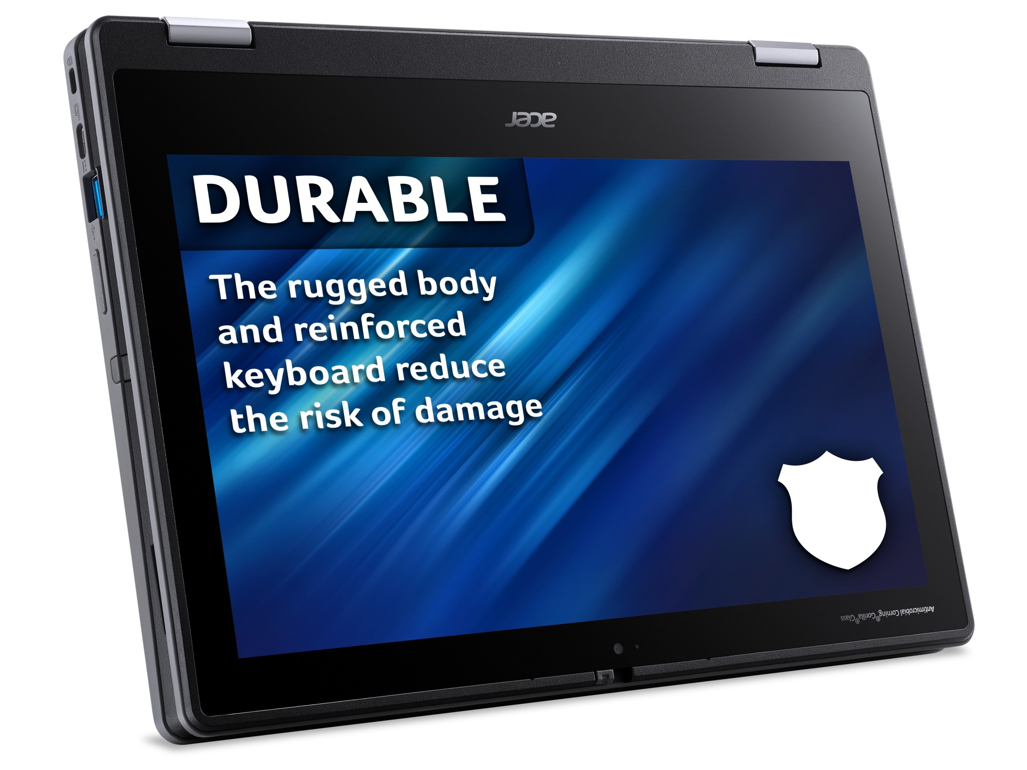 This ruggedized Chromebook features MIL-STD-810H certification, widened brackets, a shock-absorbent bumper to protect from drops as high as 122cm, and a spill-resistant keyboard that protects components from up to 330ml of liquid.