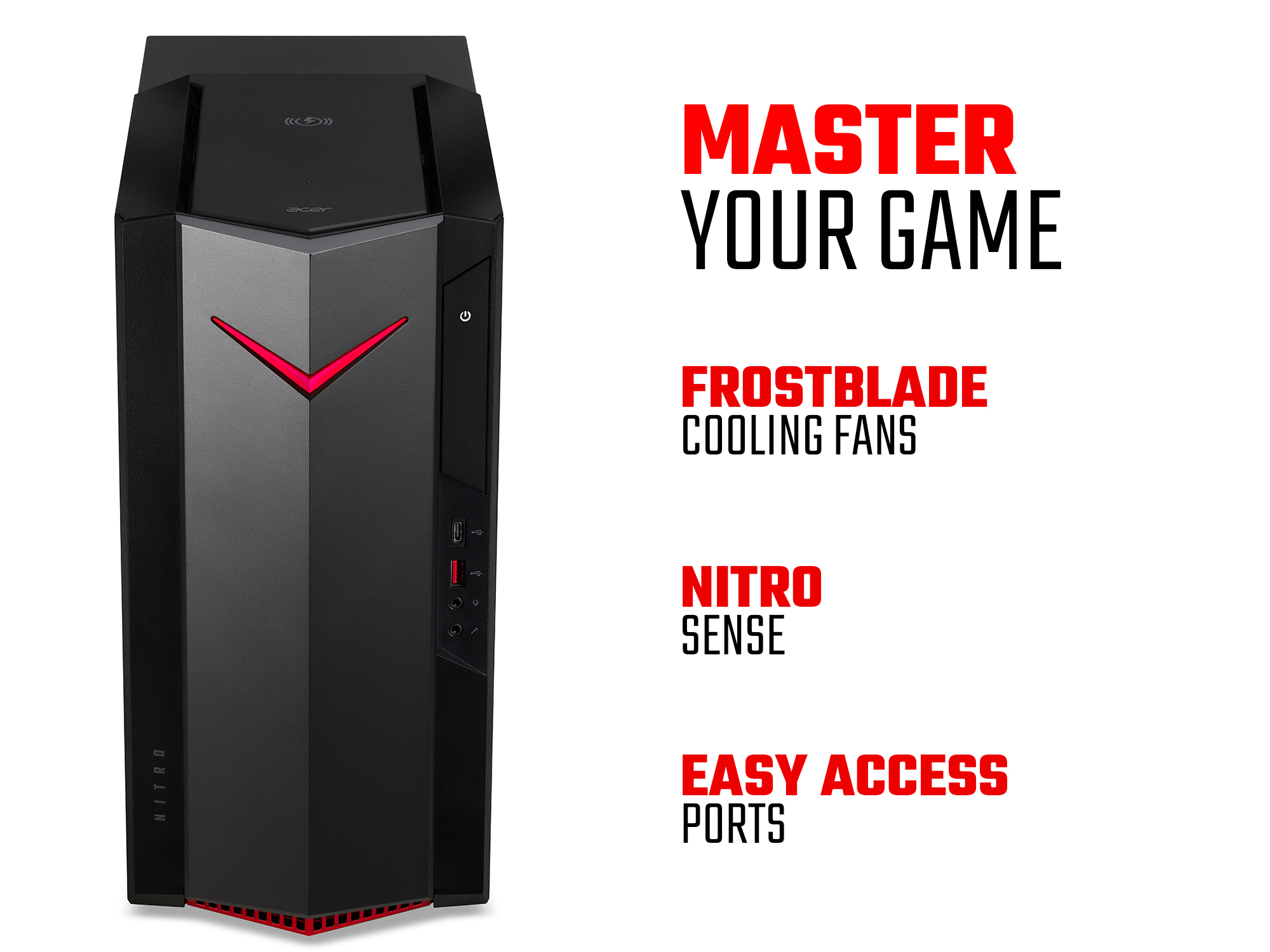 The case also comes with FrostBlade cooling fans which, combined with a design that maximises airflow, keeps the Nitro 50 cool even when running the most intensive of games.