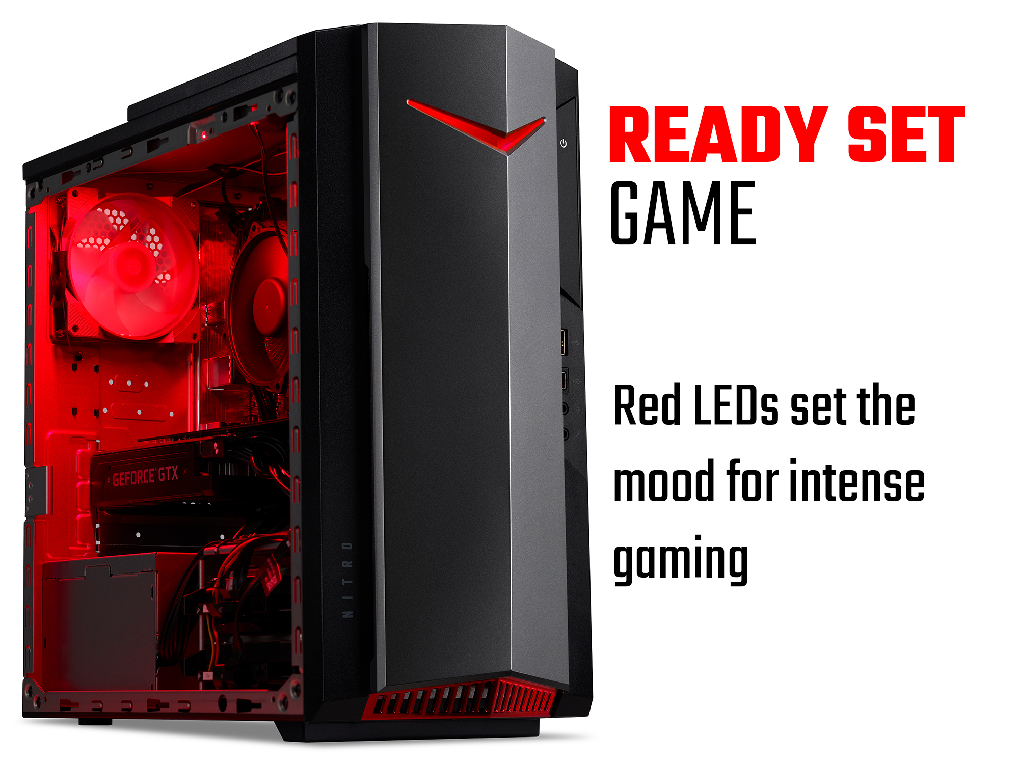 The case of the Nitro 50 is fitted with burning red LEDs that help set the mood for intense gaming sessions and at a mere 18 litres, it can fit neatly on your desk or on the floor. In spite of this small size, the Nitro 50 has space to add extra components, allowing it to grow with your needs.