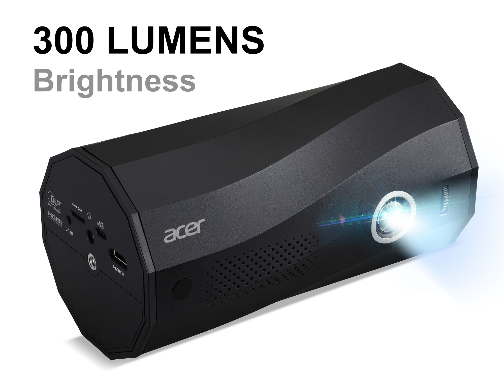 Your phone auto-rotates, and now your projector can too! With Auto-Portrait technology, the C250i is now the world's first3 portable projector that lets you change your projection orientation on the fly. No need to mess with settings or the content - just stand it up, and the Acer C250i will automatically remove those pesky black bars when you enter portrait mode.