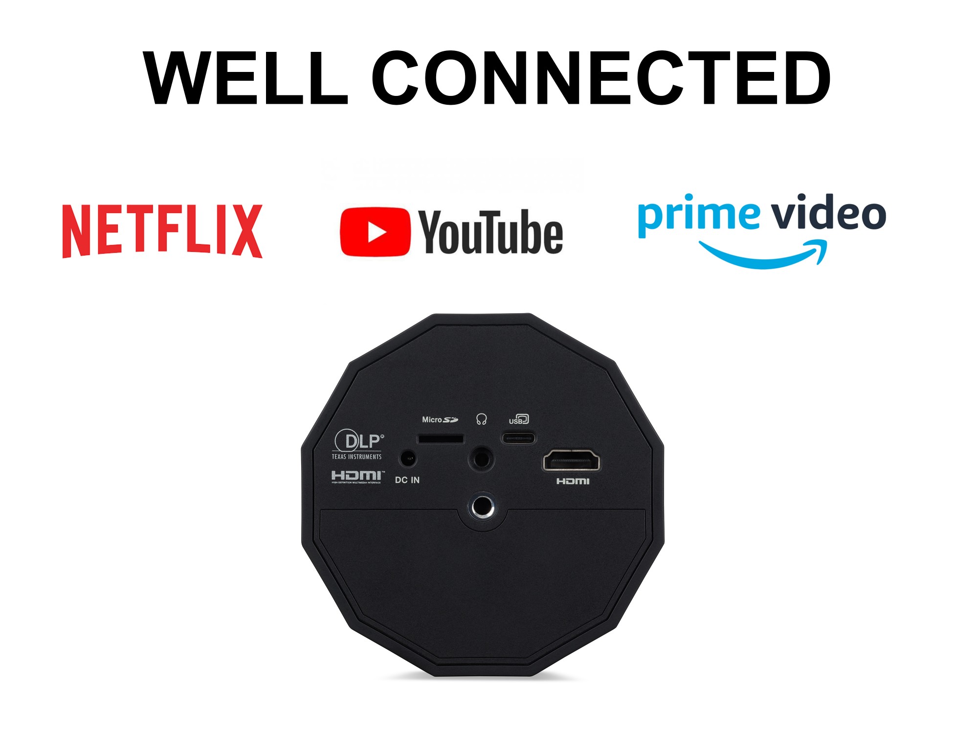 Easily take the Acer C250i with you wherever you go. The proprietary dodecahedron wave design both saves space while allowing for fully flexible 360 degree any-angle, rotatable projection without even needing a stand.