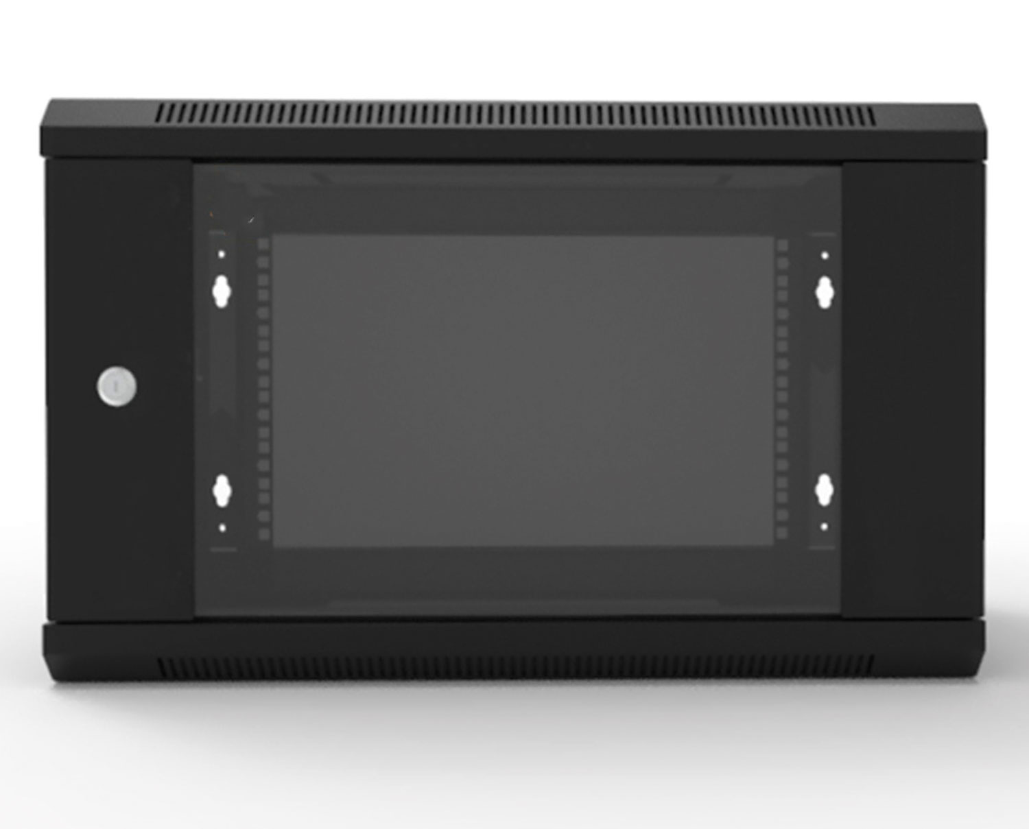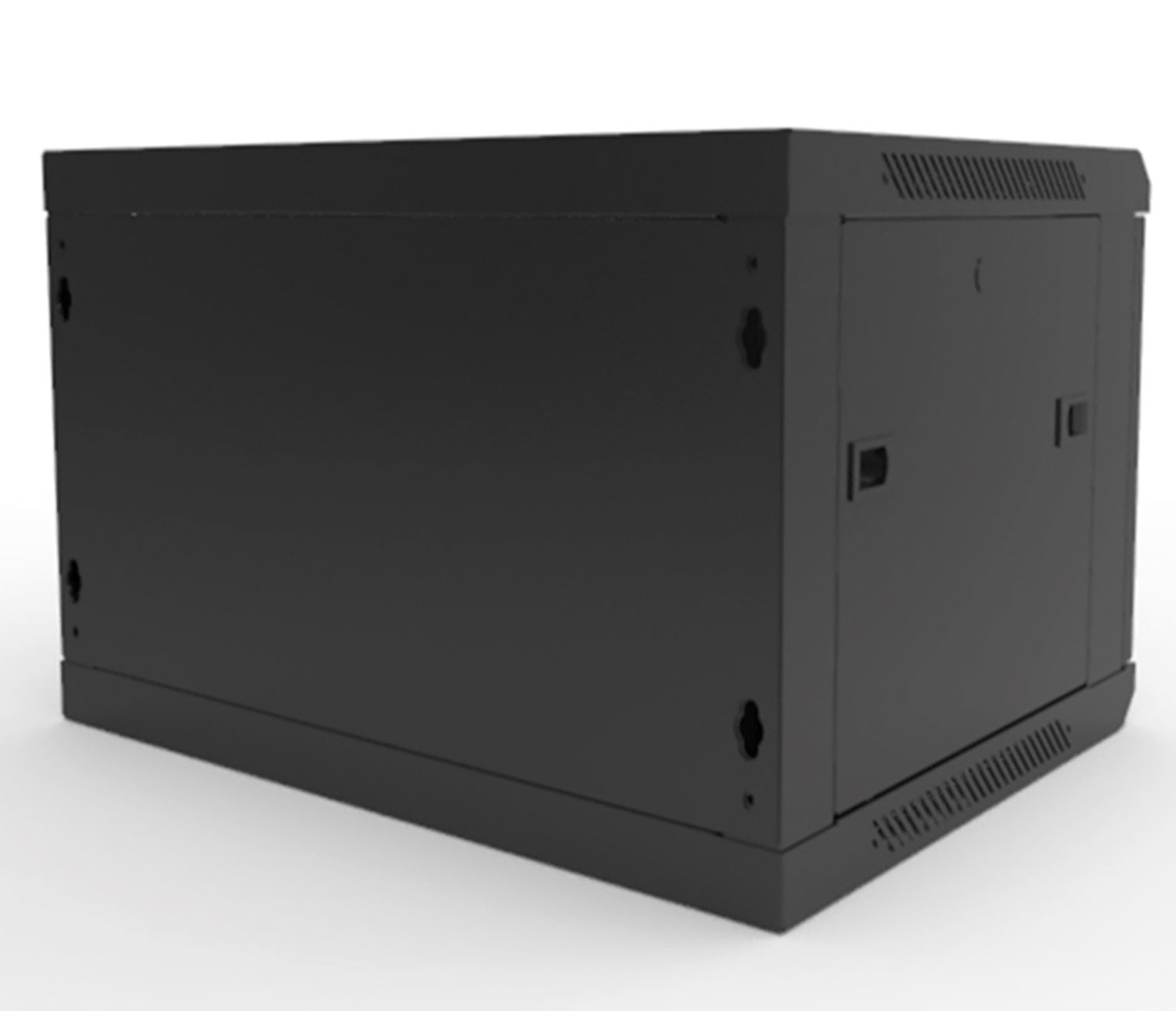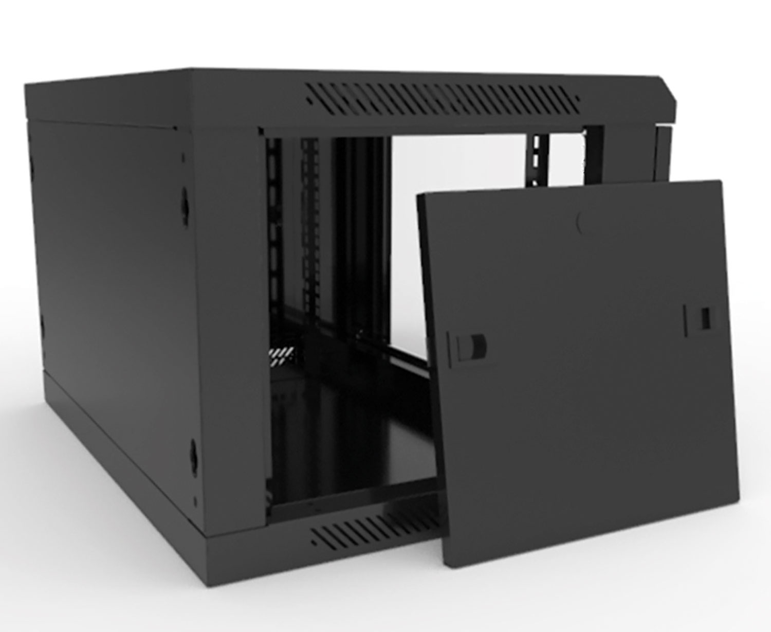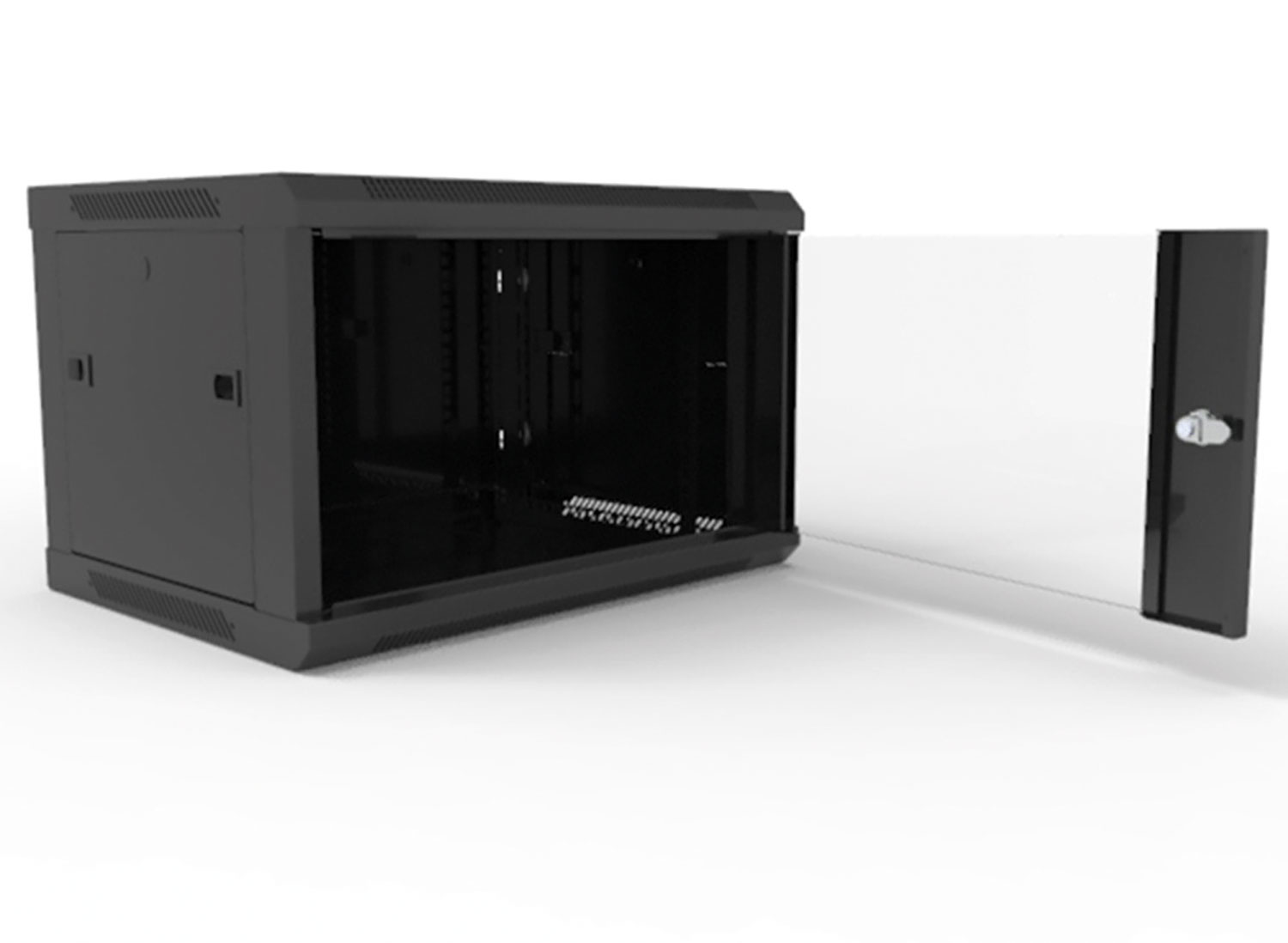 Cabinets for 19" rack-mount equipment with removable side panels and lockable front door. Constructed from cold-rolled steel with folded edges for strength and stability. Front and rear rack strip is supplied and mounted to rails inside the cabinet, enabling the mounting depth to be adjusted to accommodate equipment with overhanging fittings or to support the rear of heavy units. The top panel is vented for cooling and has a cut-out for mounting a cooling fan if required. The front door is removable and has a pane of 5mm tempered glass flanked by folded steel edge panels which can be mounted to open to either the left or right. The rear panel has fixing apertures for wall mounting or alternatively, the cabinet can be free-standing. Superbly designed, secure containment for professional rack installations.