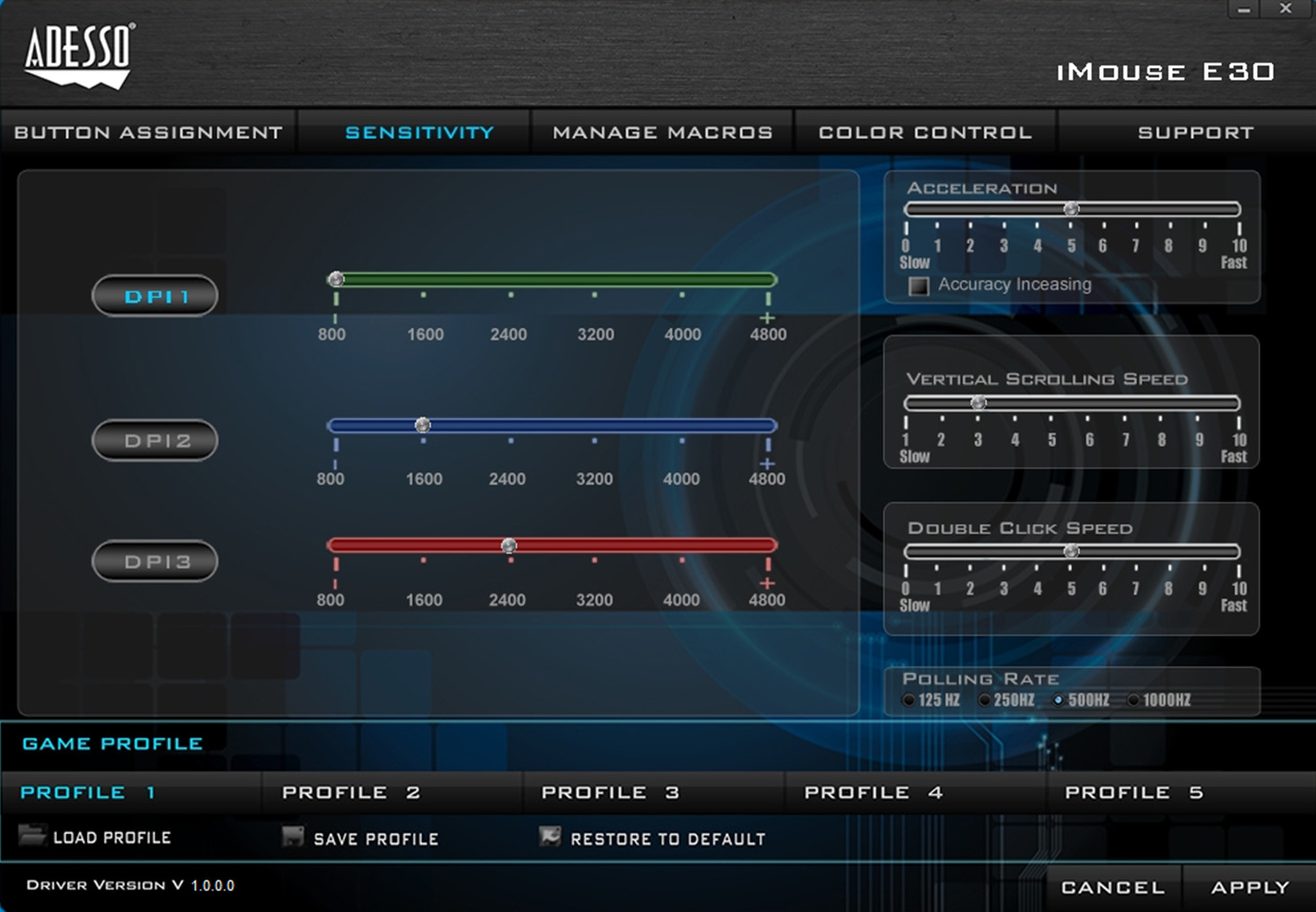| Movement resolution | 2400 DPI |