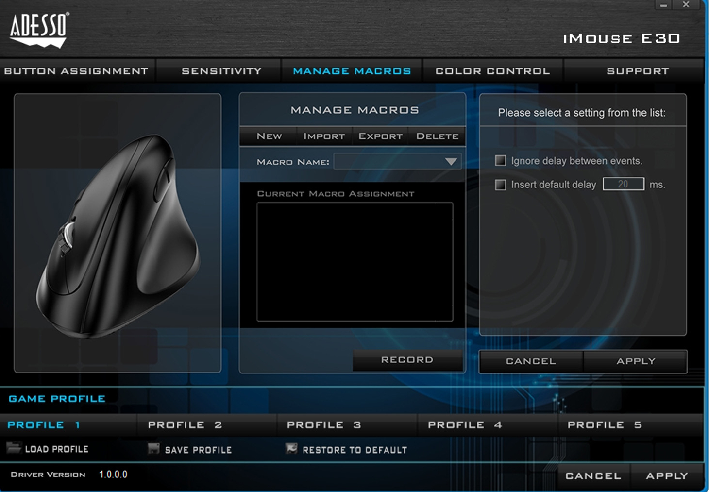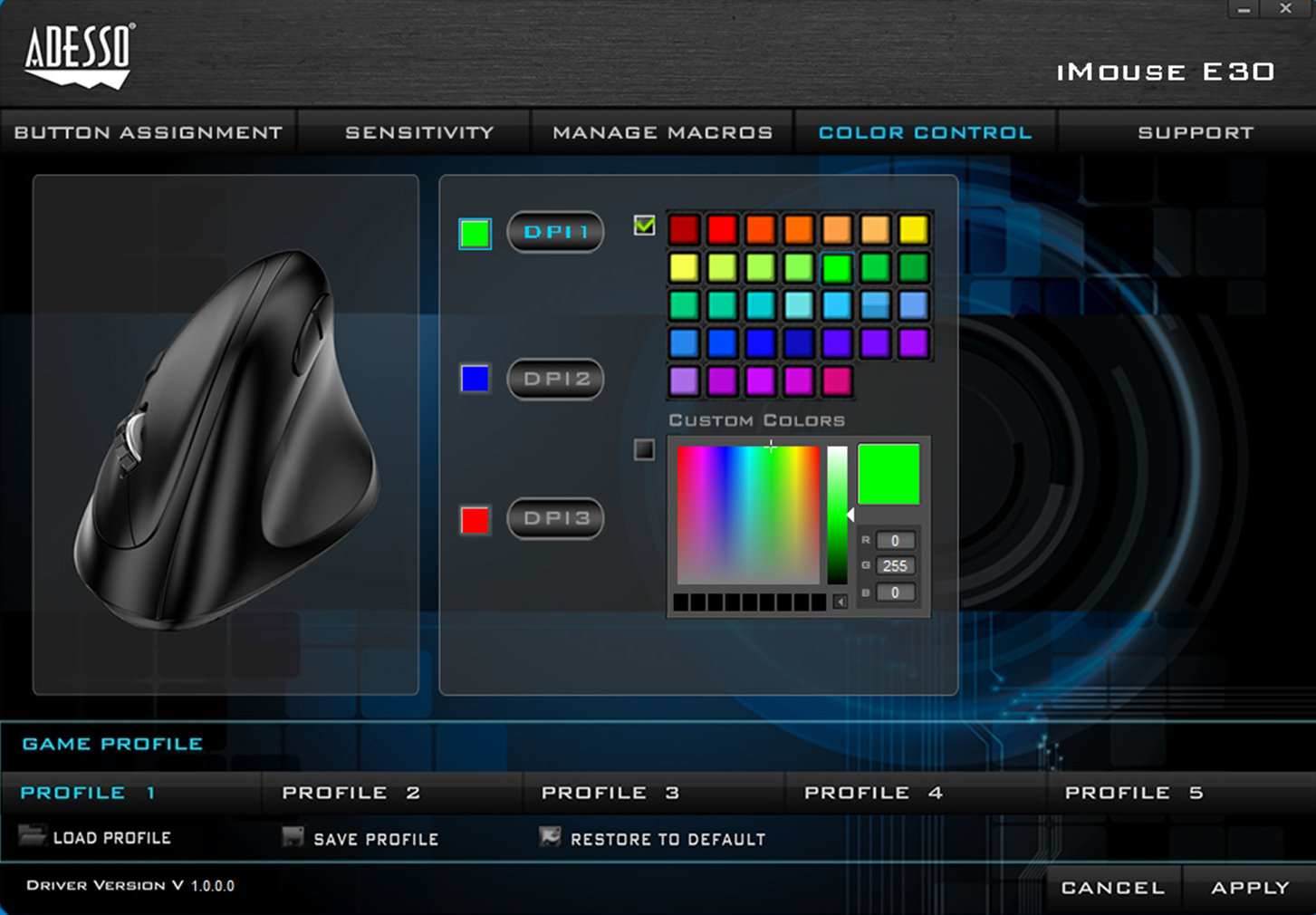 With 2.4 GHz Radio Frequency technology, the Adesso iMouse E30 Wireless Vertical Righthanded Ergonomic Mouse provides you with wireless convenience and the freedom of a smooth connection for up to a 30-foot range without tangled cables. This ergonomic mouse is designed with a vertical orientation and a contoured shape that provides a uniquely comfortable user experience. With this wrist-friendly contour support, you will hold your hand in a healthy œhandshake position which is the neutral position of your forearm as opposed to the œtwisted forearm position as with a regular mouse. Two internet buttons are conveniently located on the side of the mouse for Back and Forward page browsing. The switchable DPI button on the top provides multiple levels of mouse cursor speed that is useful in different environments. The advanced Optical Sensor technology keeps the mouse precisely on point and lets you work on most glass, wood, marble, and leather surfaces without a need of a mouse pad. Finally, the iMouse E30 is Plug and Play and requires no drivers. Simply plug the USB Receiver into any available USB port and be ready to enjoy the freedom of a comfortable and wireless mouse experience!