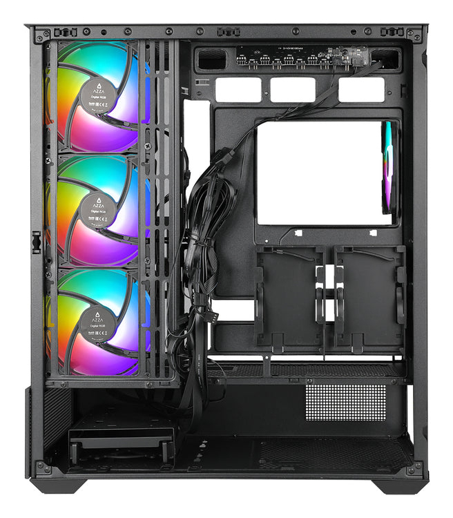 The Tiara combined with glass and mesh hole panel design, presents a succinct appearance and wonderful heat dissipation at once. It includes 3 x 120 mm ARGB side fans and 1 x 120 mm ARGB rear fan, as well as a VGA support bar.