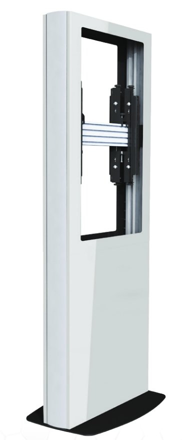 The BT7001 is a display kiosk designed to portrait mount two digital signage screens in a back-to-back configuration. A rigid chassis is fixed to a heavy duty steel base which can be used freestanding or bolted to the floor and is finished stylishly with satin black or white outer covers. The internal mounting system is made up of parts from our System X range, allowing 8-point micro-adjustment to ensure the mounted screens sit perfectly level and flush with the front and rear opening of the kiosk, which is laser cut to match your screen size.