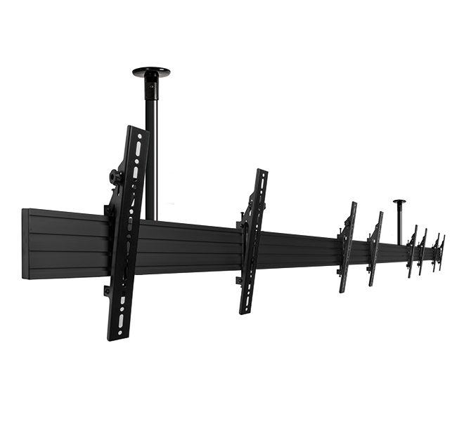 The BT8332 is a modular ceiling mounting system for menu board installations of any size. The BT8332 can mount screens in landscape or portrait orientations with the option for tilt adjustment up to +20° for enhanced overhead visibility, perfect for fast food restaurants. As part of the System X range, the BT8332 can be used in thousands of different configurations and must be ordered according to your requirements using B-Tech's online configuration tool.