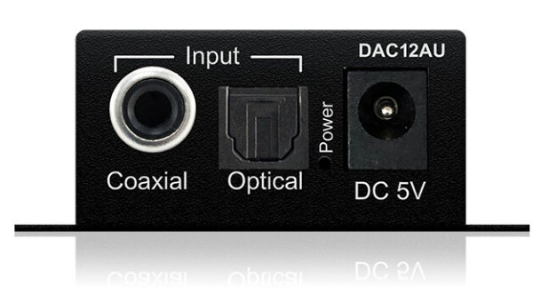 Our DAC12AU is designed to convert either coaxial or optical signals from a digital signal to analogue stereo audio. The DAC12AU also includes a digital converter which converts optical audio in to a coaxial digital output. This provides the perfect cost effective solution when connecting the digital audio output from a TV display to an analogue input on an amplifier. The DAC12AU utilises 192kHz sample rates for enhanced sound reproduction.