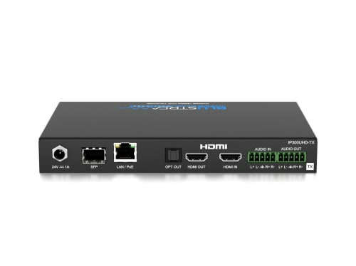 The Blustream IP300 series Multicast distribution platform allows virtually latency free (1 frame) distribution of 4K HDMI video over a 1Gb managed network.