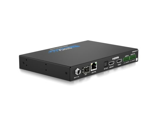 Featuring full interoperability with the IP350UHD product line where Dante is required, the IP300UHD-TX is an industry leading 4K HDCP 2.2 HDMI transmitter that, using visually lossless compression technology, delivers 18Gbps HDMI, audio, bi-directional IR, RS-232 & USB/KVM up to lengths of 100m over standard copper network architecture, or greater distances using the in-built fibre SFP network interface.