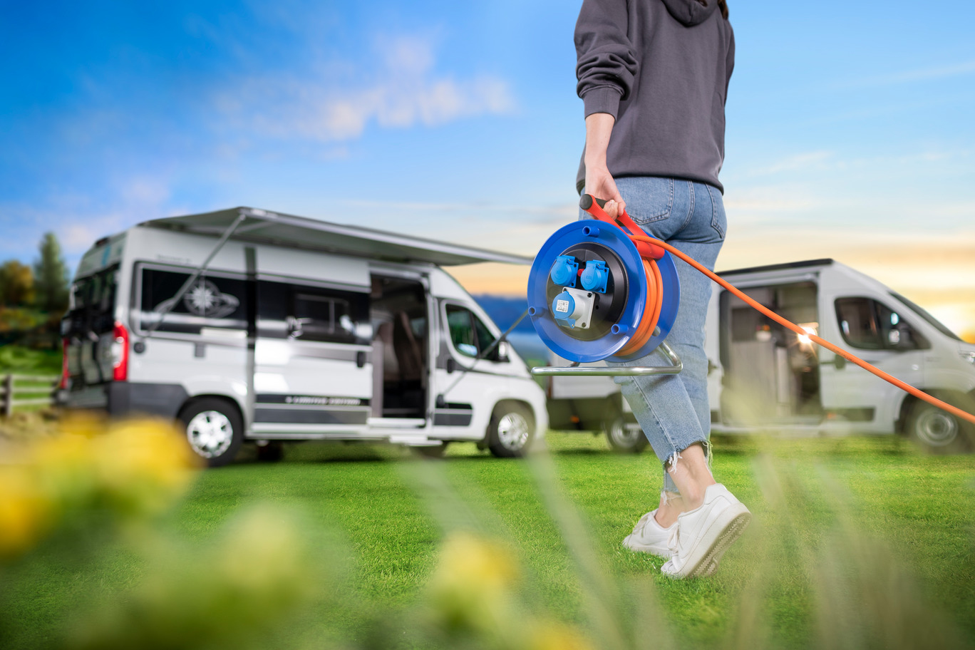 The Garant CEE IP44 cable reel with 25m cable length in the colour orange convinces by its quality and safety in all areas. The CEE cable reel is ideal for outdoor use, such as camping. The orange RN cable is very robust, oil resistant and is also suitable for permanent outdoor use. The camping cable reel also convinces with the following features.