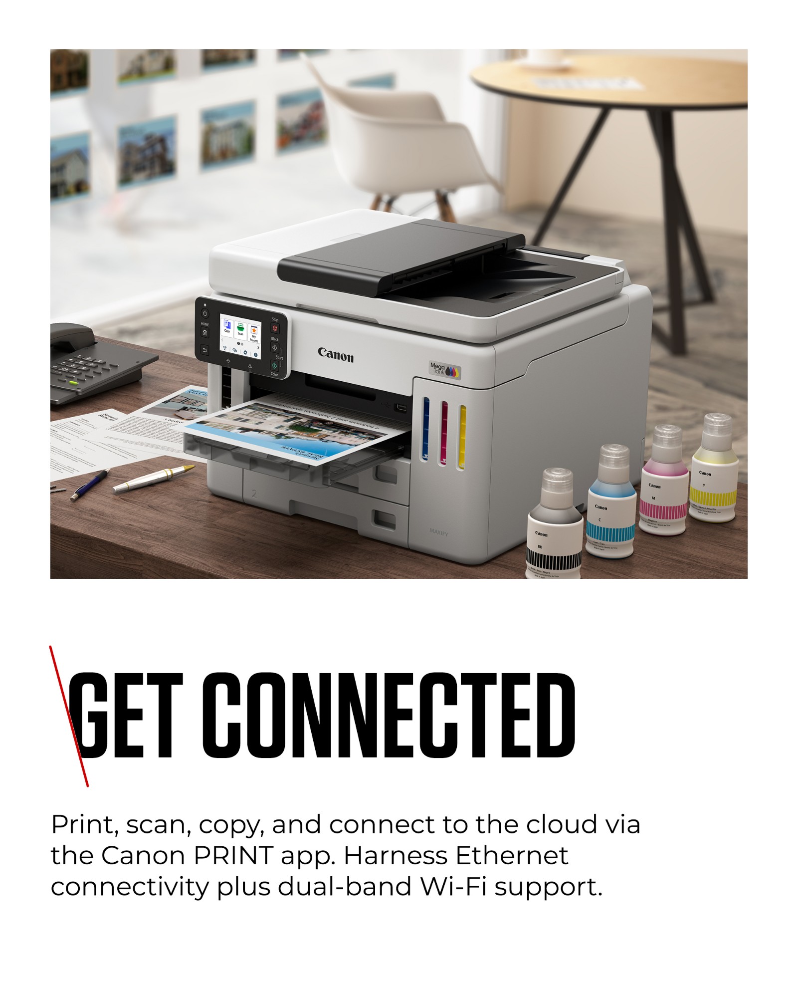 Print, scan, copy, and connect to the cloud via the Canon PRINT app. Compatible with Apple AirPrint (iOS) and Mopria® (Android). Harness Ethernet connectivity plus dual-band Wi-Fi support.