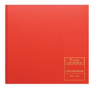Collins Cathedral Analysis Book Petty Cash 96 Pages 150/7/14. 1 812150/8. Fully casebound in red leathergrain. Printed on high quality azure wove paper, each page has 41 lines and features discreet boxhead vertical and horizontal line numbering.