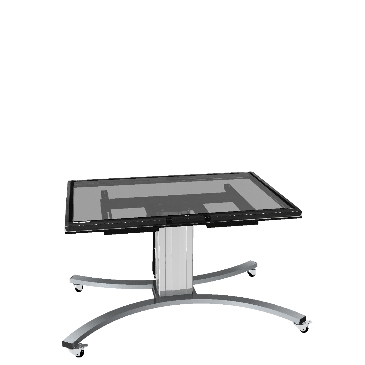 The electrically height adjustable & tiltable display & monitor stands come standard with a wired remote control. With two buttons, the display stand can gently be raised and lowered. Controlled movements protect the sensitive touch screen displays. Two additional buttons control the slope of the system.