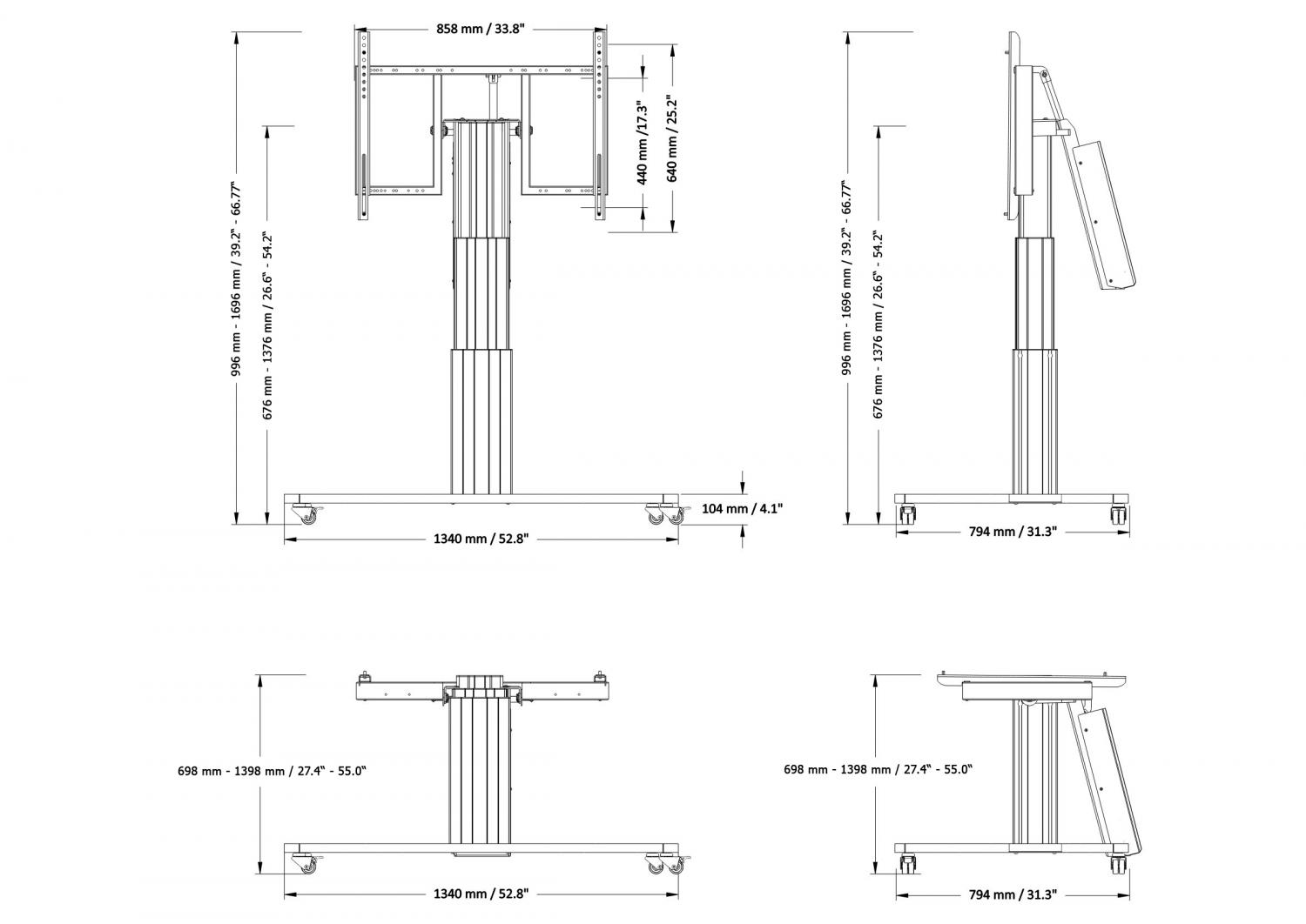 Conen Mounts Motorized mobile height and tilt adjustable monitor stand, 70 cm of vertical travel