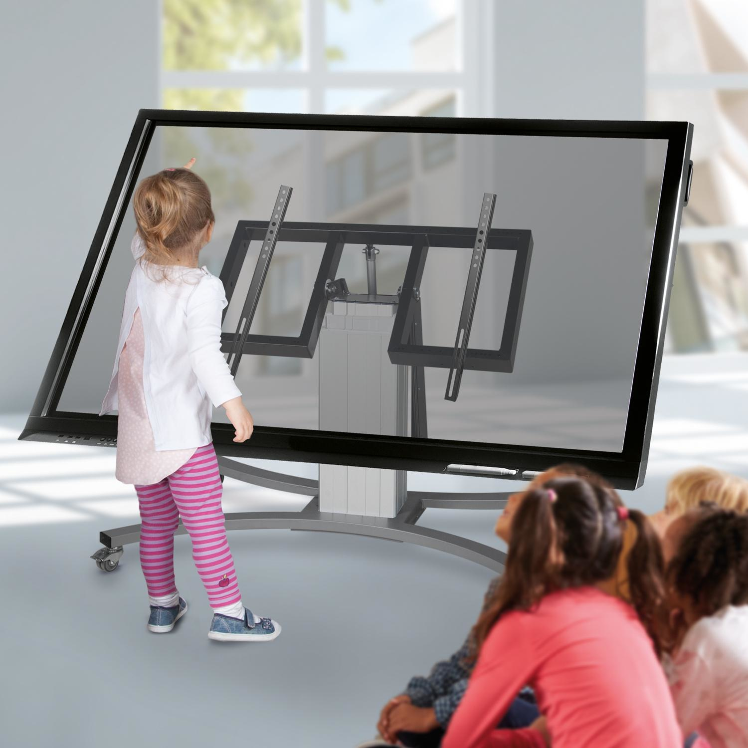Small group learning activities require for flexible interactive solutions. The Conen Mounts height tilt & table adjustable tv carts are height adjustable to accommodate children of various heights or those in wheelchairs. The "SCETTAC3535" features the 3-tier column, which provides an extended 70 cm of vertical travel, making it the perfect solution for K-12 or special needs applications. It provides minimum clearance for small children or those in wheelchair to access the display and maximum clearance for the teacher to present.