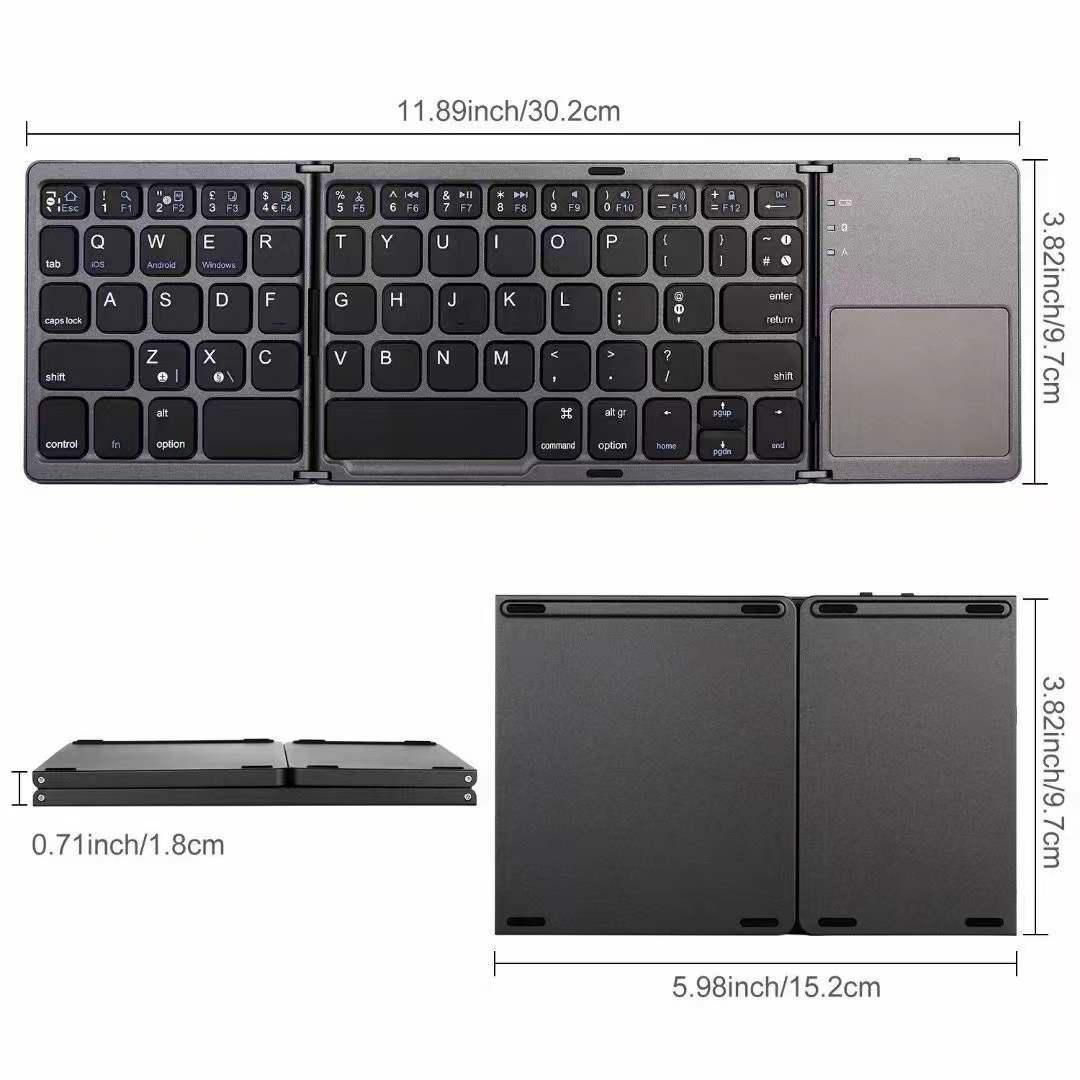 Foldable wireless US/English keyboard with touch, Dark Grey