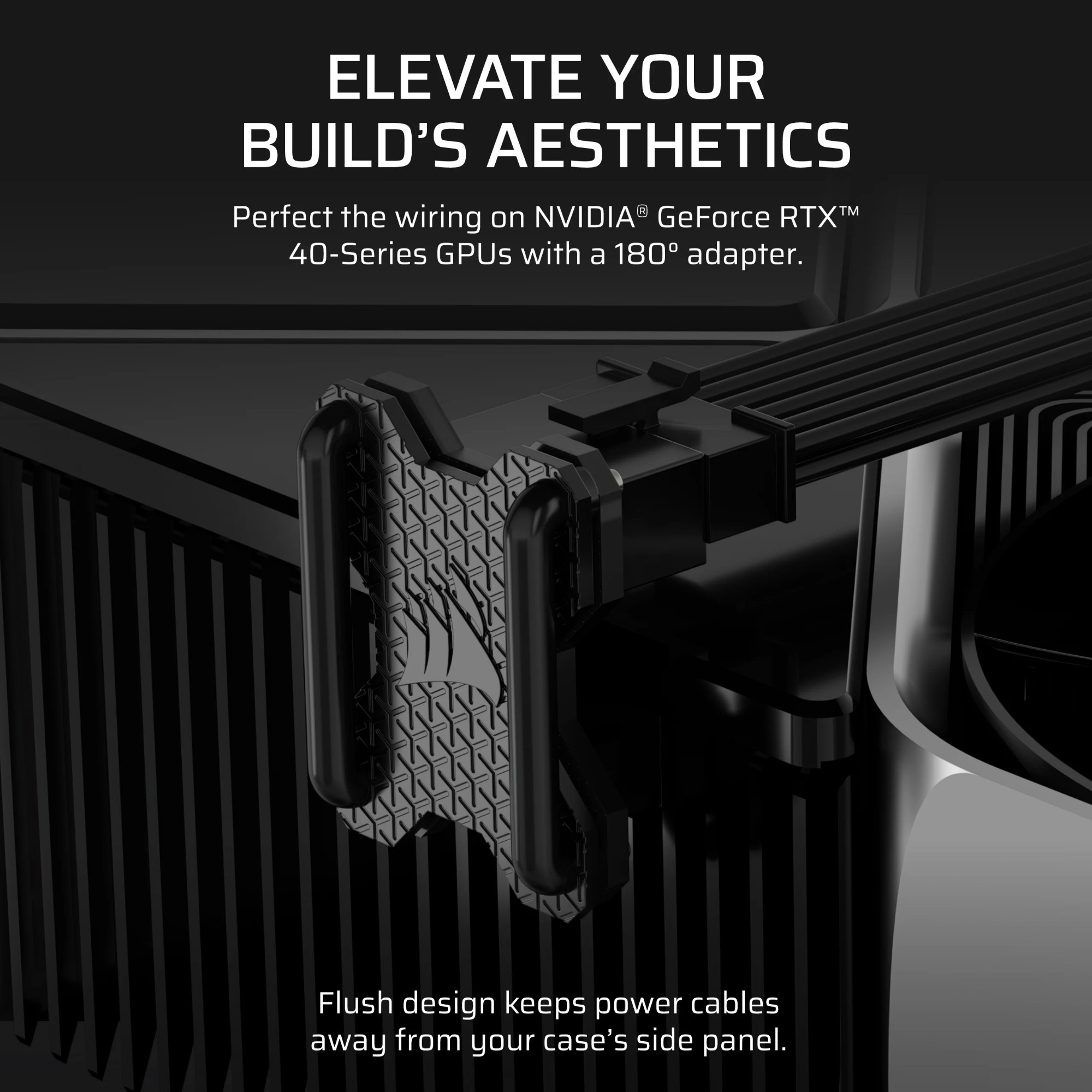 An elegant 180° adapter keeps cables away from your side panel for a sleek and organized look.