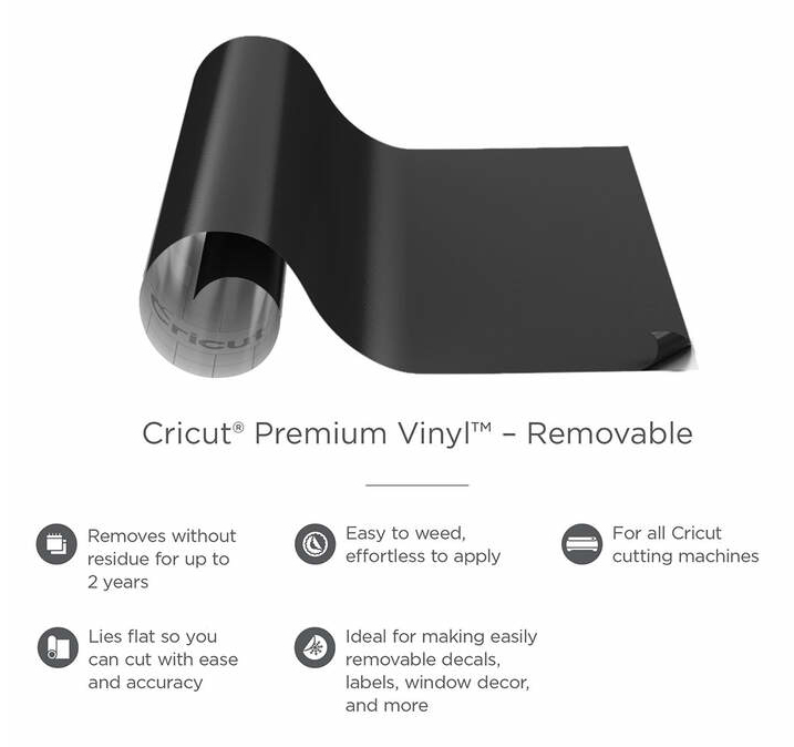 Relax, it's removable! Every project goes smoothly when you use Removable Premium Vinyl. This amazing vinyl lies flat on your cutting mat – no tunneling or bubbling. Once you cut your design, weed with ease and apply with awe. Even your most intricate designs effortlessly separate from the carrier sheet for a perfect application. Apply designs to almost any surface. For ultimate flexibility, Removable Premium Vinyl stays removable for up to two years without residue. For use with all Cricut cutting machines.