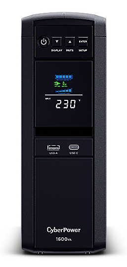 CP1600EPFCLCD UPS 1600VA/1000WSinewave PFC compatible AVR GreenPower Energy Saving Technology LCD USB Management-Software Outlet UK type |