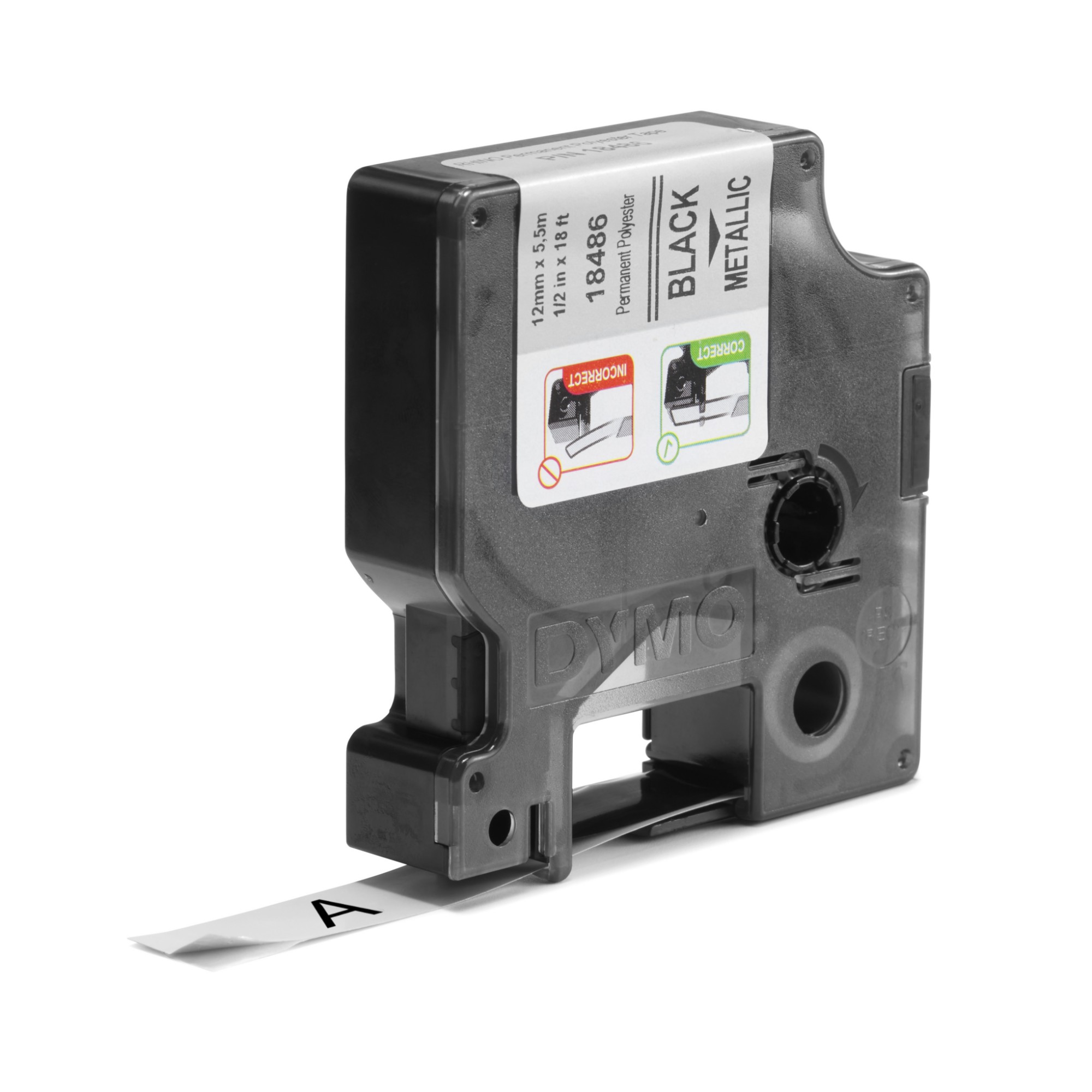 DYMO Rhino Industrial Permanent Polyester Labels | 12mm x 5.5m | Black Print on Metallic | for Rhino & LabelManager Label Makers
