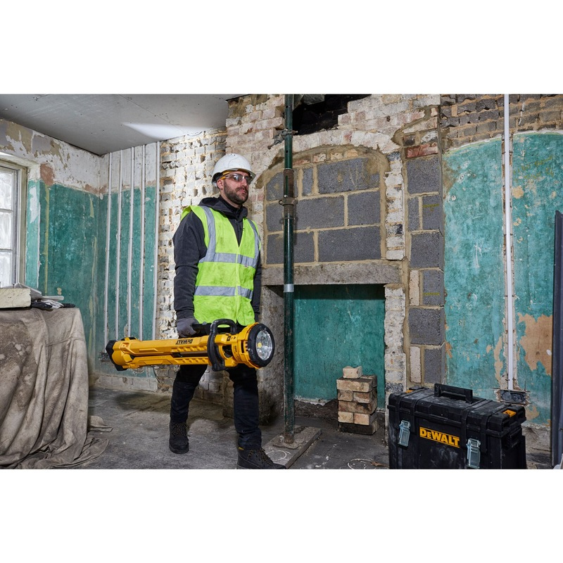 The DEWALT 20V MAX* Cordless Tripod Light illuminates your workspace in the toughest jobsite conditions. It's built for incredible durability in use, storage, or transport. Eliminate the hazardous heat of halogen. Cutting edge LED technology provides extended runtime and natural white light. Variable brightness settings up to 3000 lumens let you customize illumination for your work area. Compact design with carry handle provides easy portability, and it sets up in seconds. Rotating, pivoting head directs light where you need it. ͍ ͍ This package includes the light only.