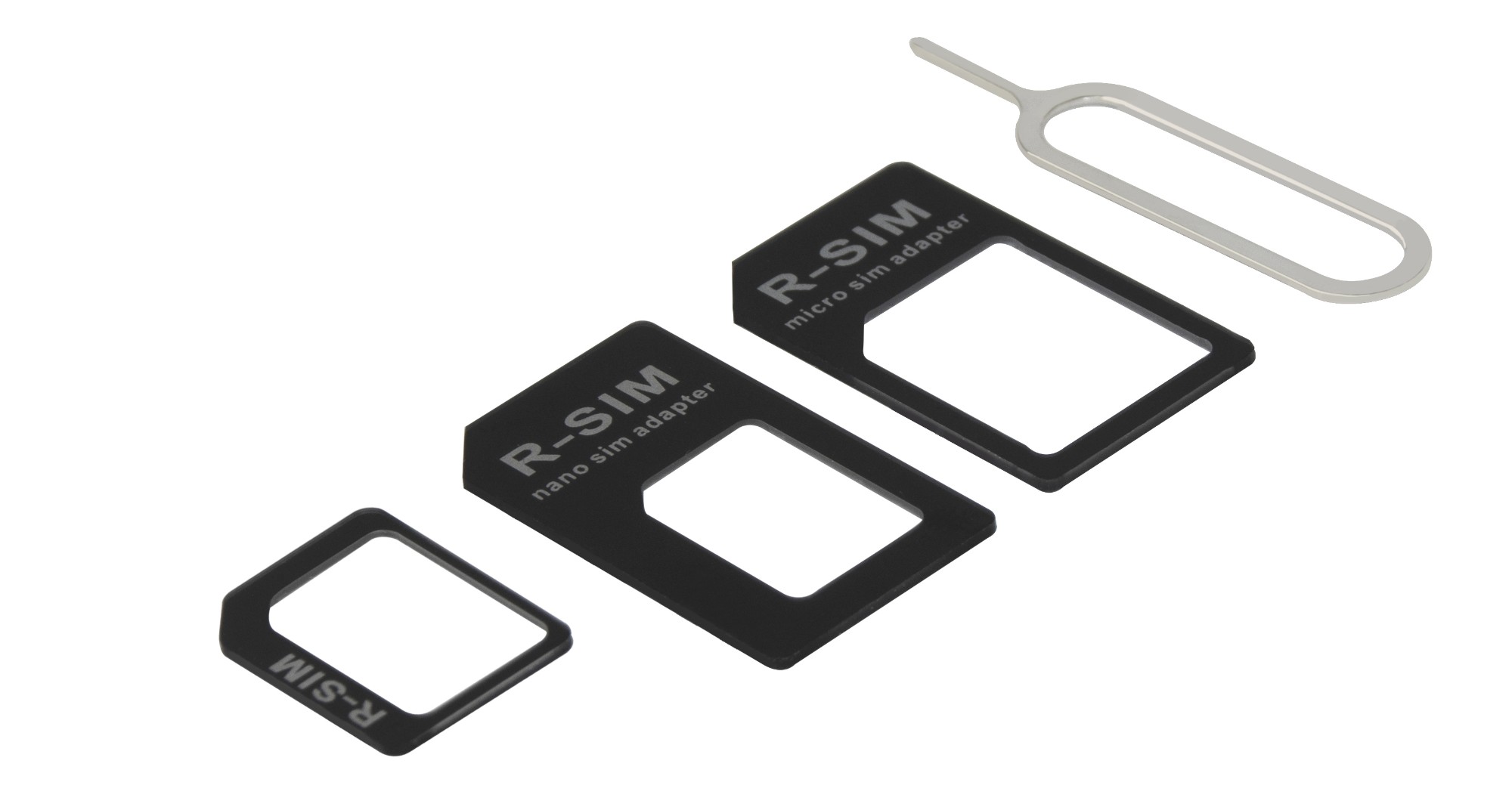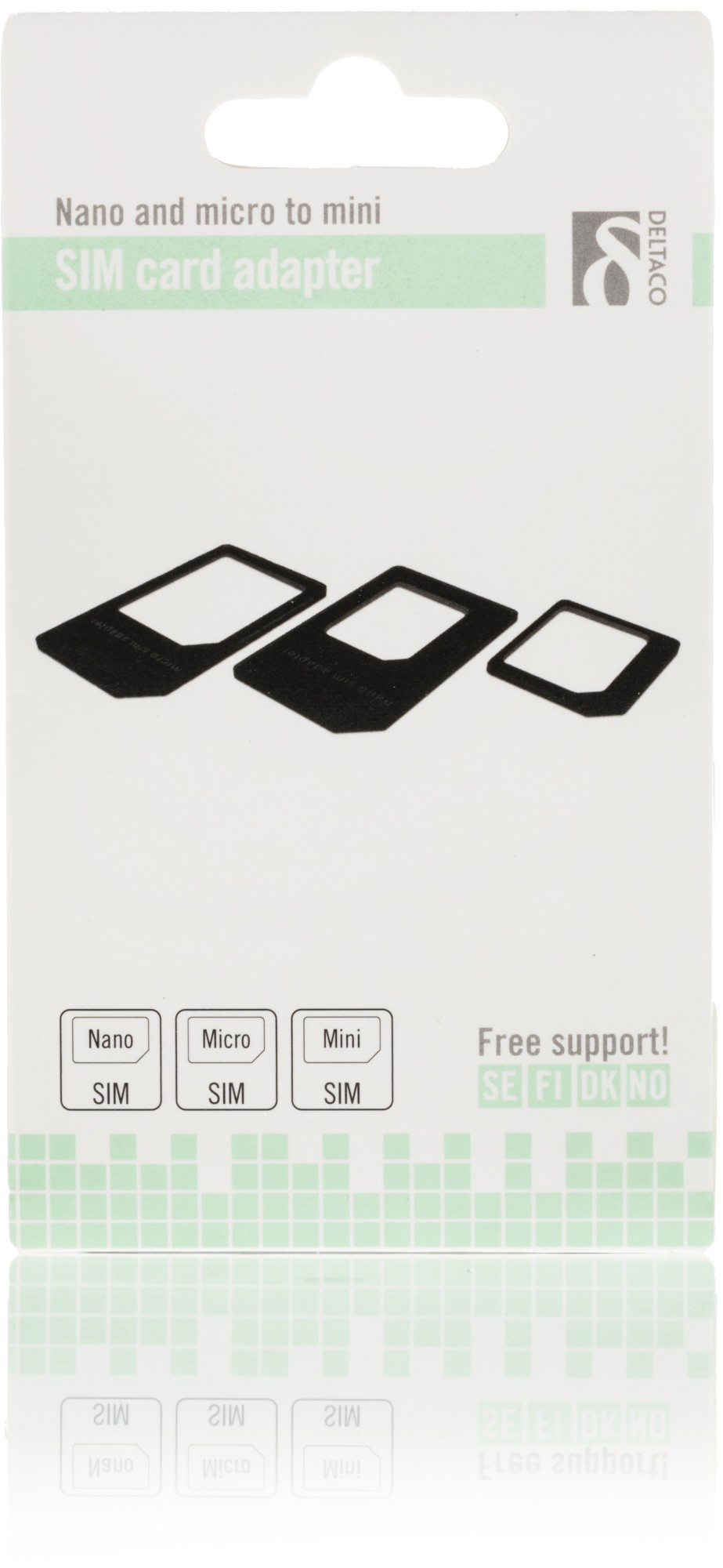 SIM card adapter for micro / mini / nano-sim, black. Allows you to convert both Micro and Nano SIM cards to a standard SIM card.