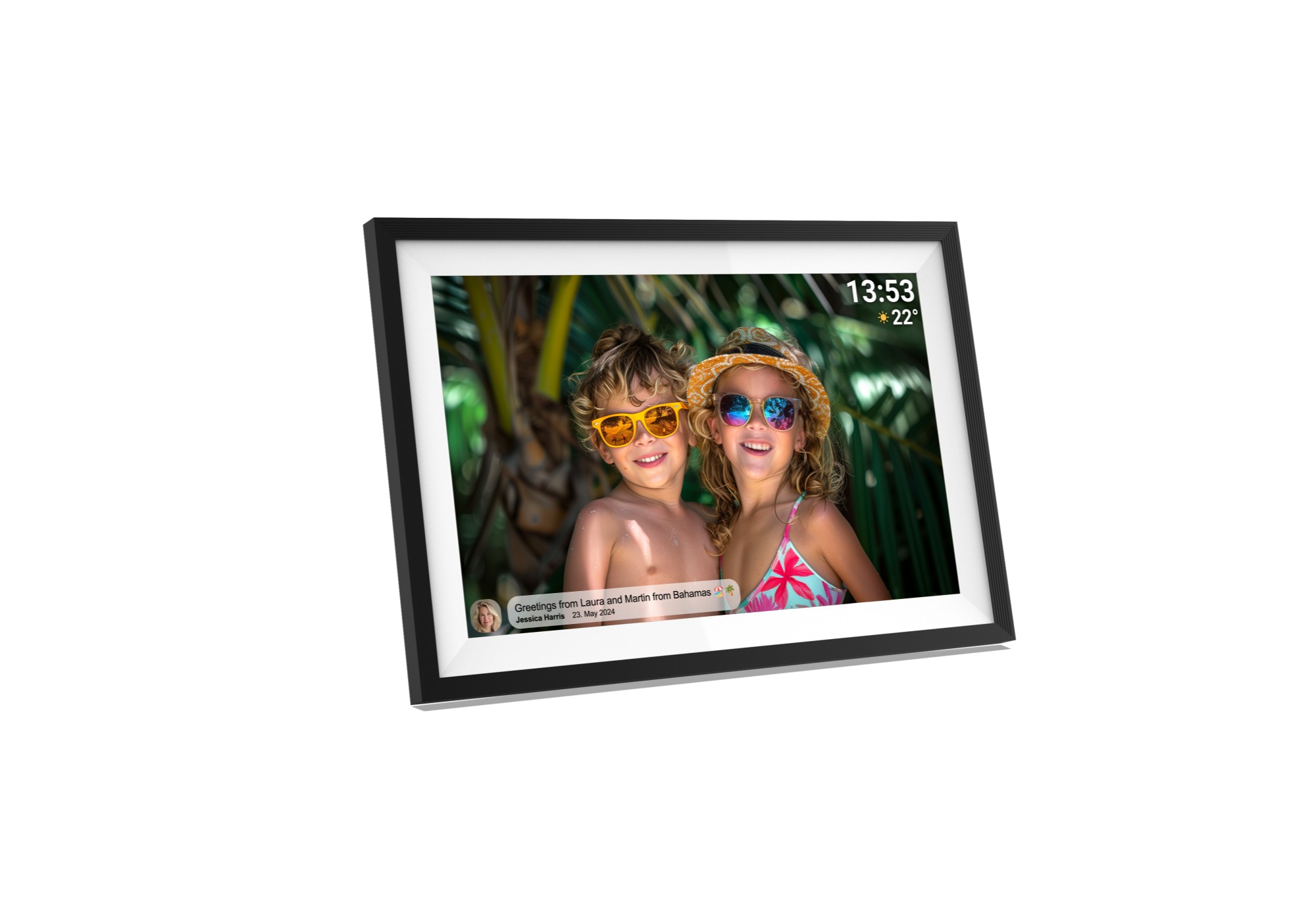 10.1” digital Wi-Fi photoframe with FRAMEO photo software This is a new social way to share pictures with friends and family. IPS touchscreen gives good sharp pictures.