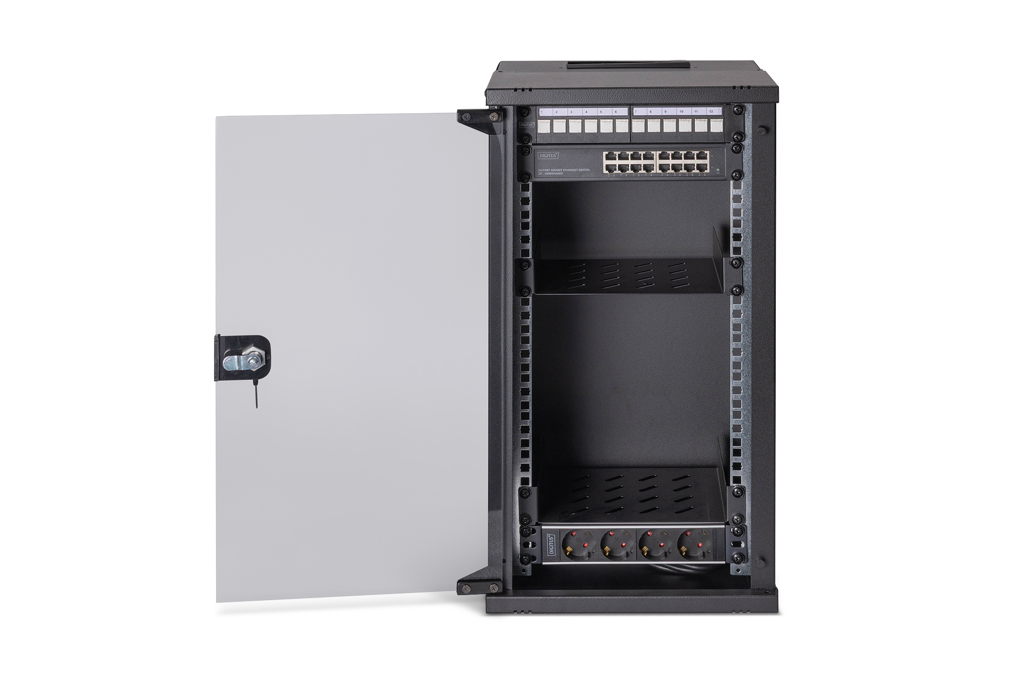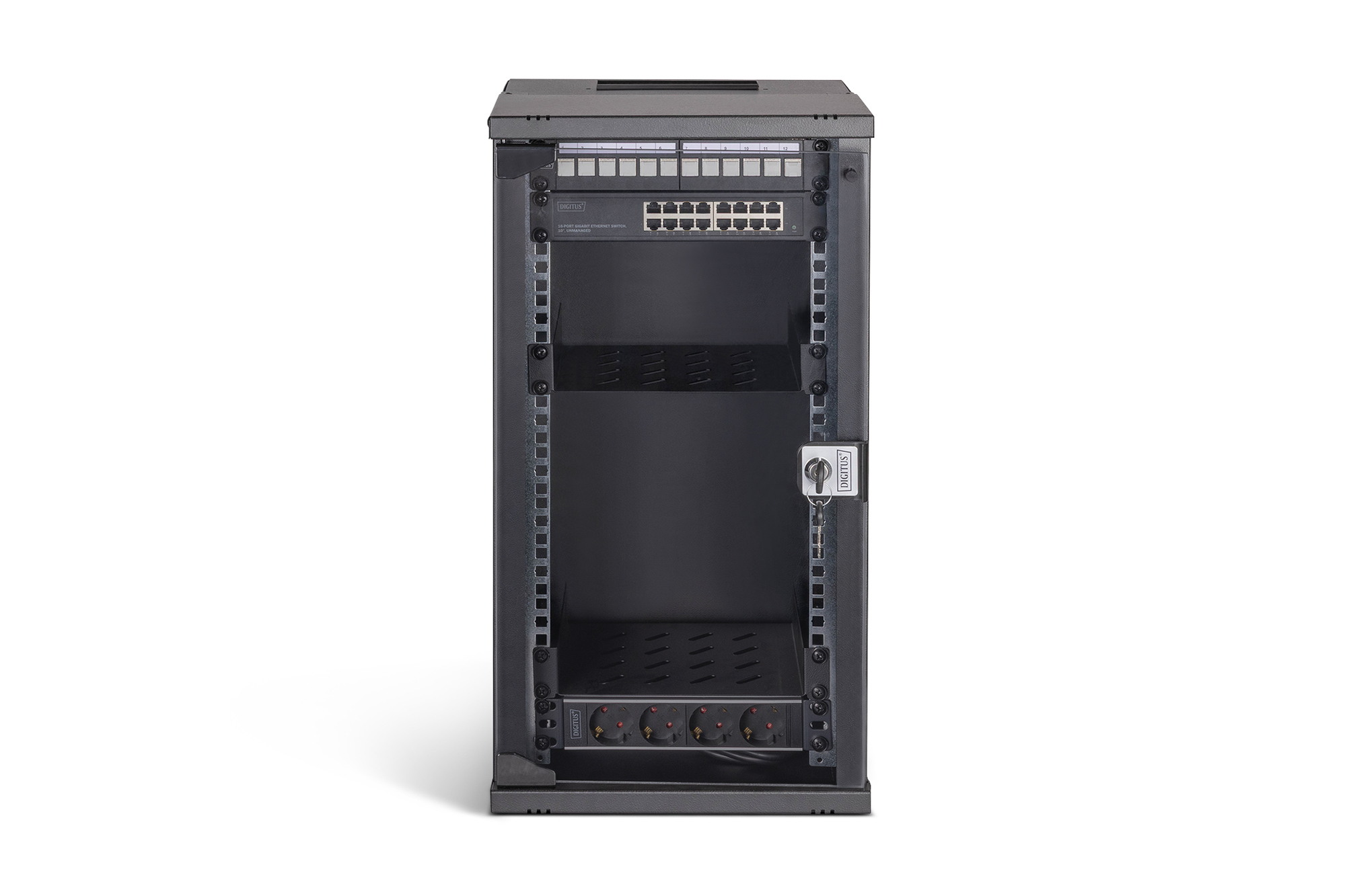 - Including wall-mounted enclosure SOHO PRO, 12U, 595 x 315 x 300 mm, unassembled (DN-49105)