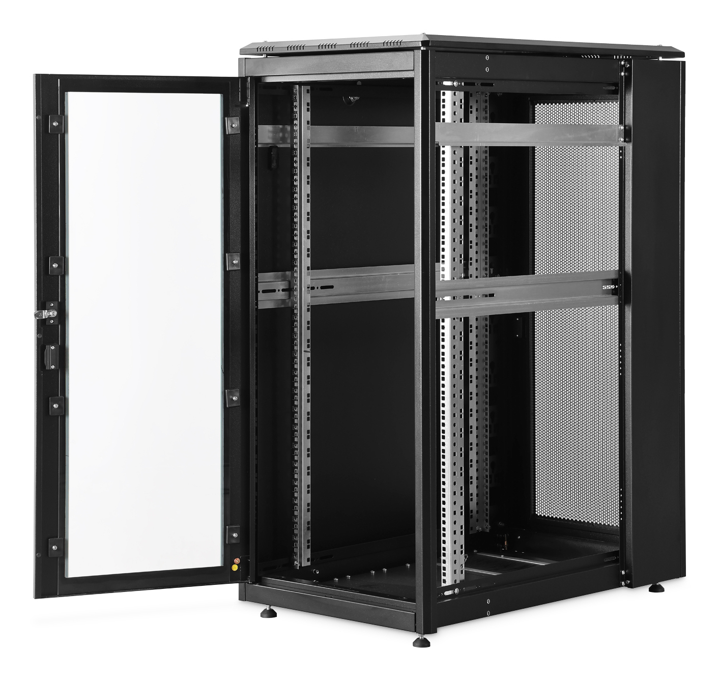 - Integrated PDU holders in the rear cabinet area on the left and right