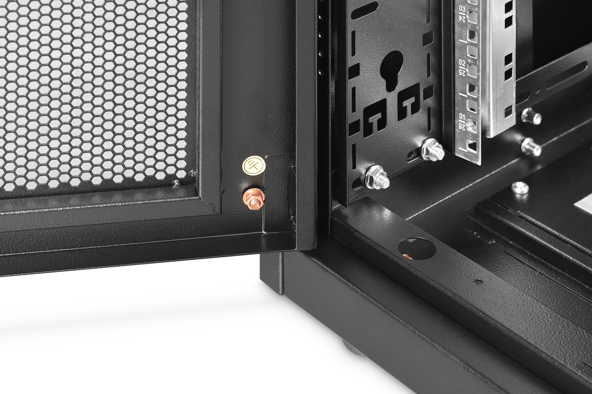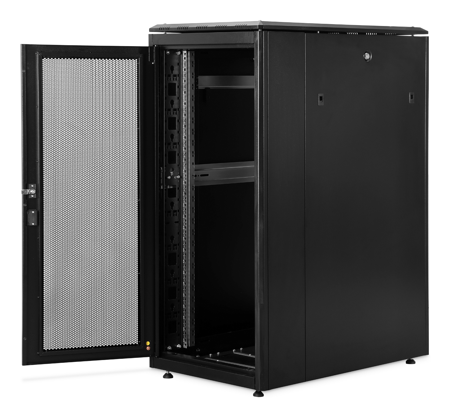 - Integrated PDU holders in the rear cabinet area on the left and right