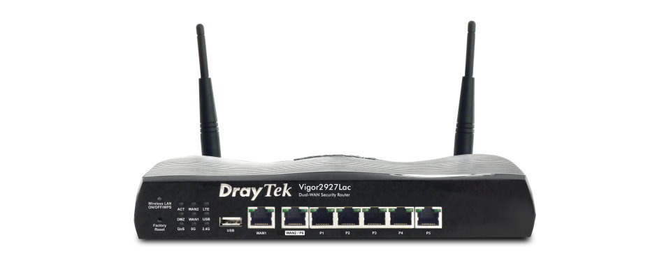 The DrayTek Vigor 2927Lac is a powerful Dual-WAN, Load Balancing, Firewall & VPN Router. It comes packed with features, allowing you to make the most of FTTP Fibre Broadband, with Gigabit WAN throughput, extensive Firewall, Content Filtering, VPN client/server, and Quality of Service controls.