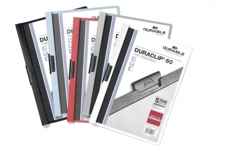 With transparent front cover and coloured back and spine. Capacity: 1-60 sheets, A4. DURACLIP is ideal for quotations, reports and seminar notes as well as for storing documents in the office and home.