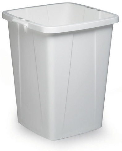 90 litre square bin. With handles for easy transportation. Ideal for waste-disposal and recycling. Bin is food safe and can be stored in a freezer.