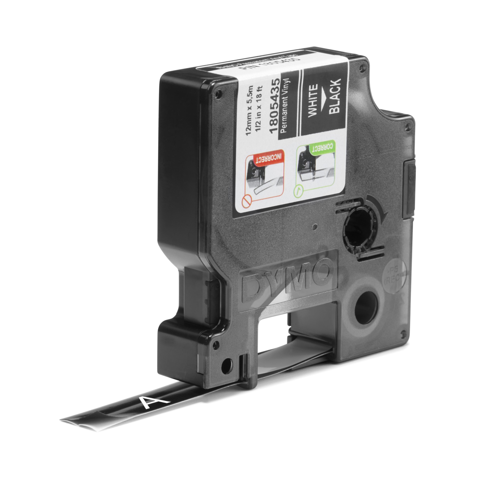 Dymo 1805435 Ribbon Vinyl white on black 12mmx5,5m for Dymo Rhino 6-12mm/19mm/24mm