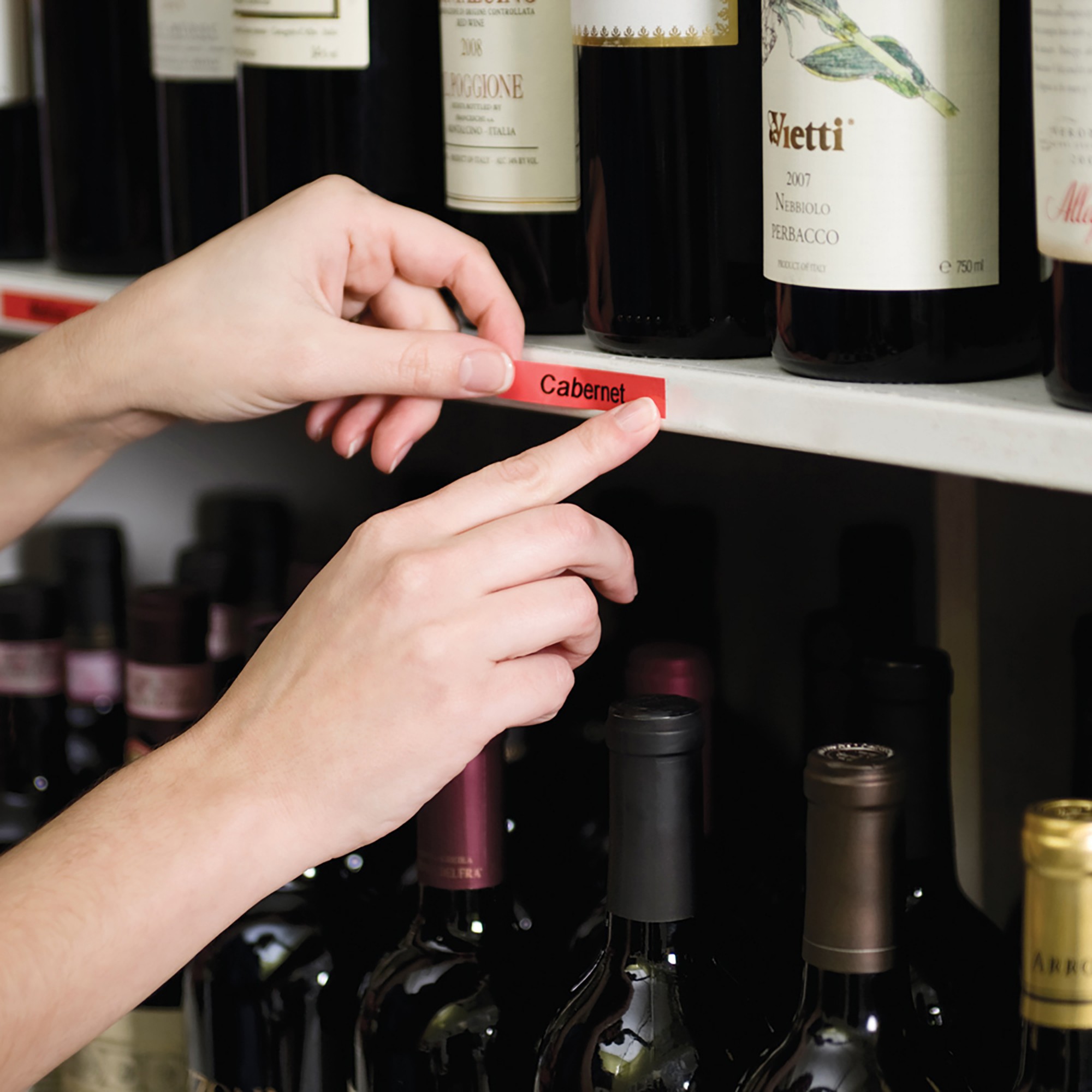 | Label colour | Black on red |