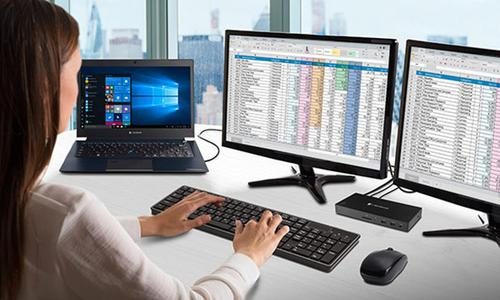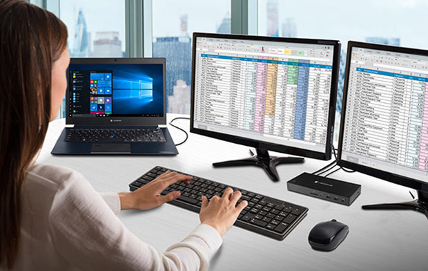 The Dynabook laptop docking station is an excellent choice for your home or office setup. Supporting up to three displays and four USB 3.0 devices simultaneously – you can connect, share and create with ease.With minimal cable clutter and maximum convenience, the USB-C™ Dock helps you power through every task.The dock also acts as a charger, so when you need to work on the move, simply unplug your laptop safe in the knowledge that your device is fully powered.