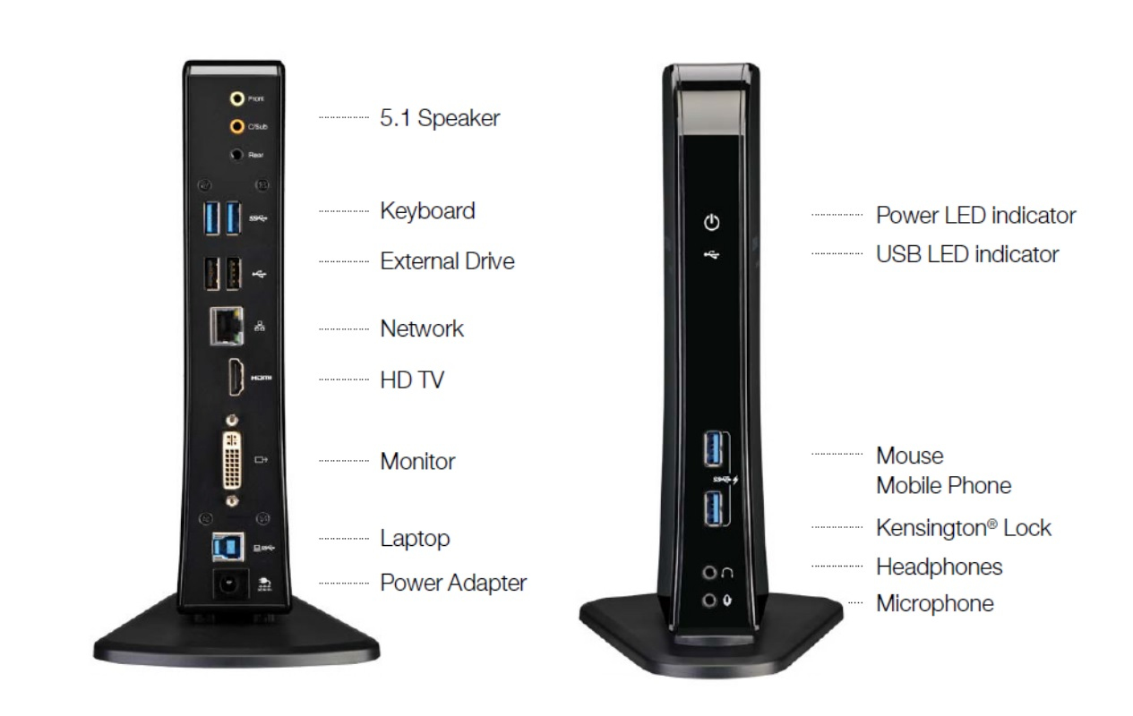 Creating the ultimate workstation has never been easier with this slimline one stop docking station. This versatile docking station has everything you need to get the most of your laptop whether working from home or in the office.The sleek design takes up minimal desk space and helps keep work areas free of cables. The versatile power supply means you can make use of undocked charging of smart devices using the USB sleep and charge technology.