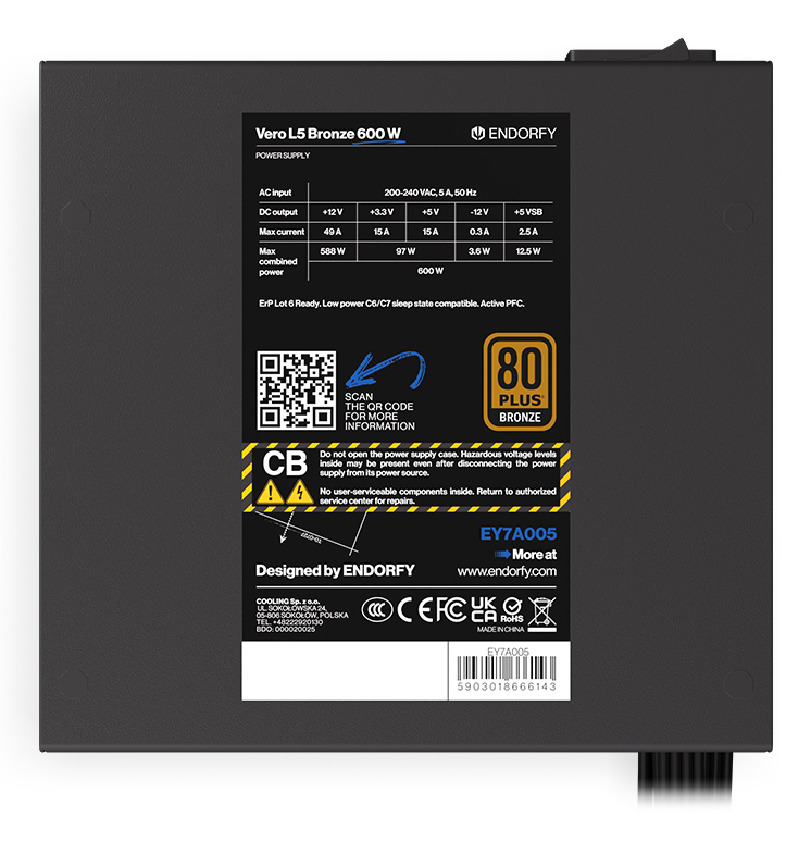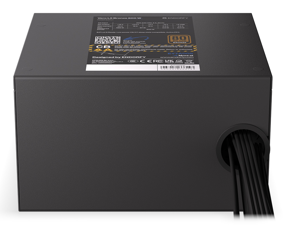 It's a stable power supply with DC-DC converters to regulate voltages and deliver 500 W of continuous power. With Taiwanese Teapo electrolytic and aluminum-polymer capacitors inside, the Vero L5 Bronze 600W can operate at temperatures up to 105⁰C. No wonder this bad boy is 80 PLUS® Bronze certified.