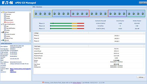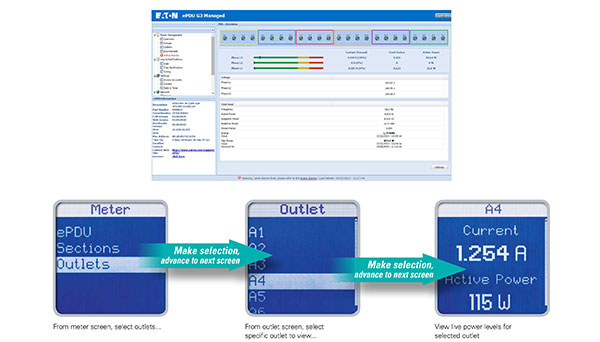 ePDU G3 Metered Outlet models allow device level metering over multiple power feeds, and includes kWh, peak power and current draw. Clearly view and understand the consumption of individual devices powered over A and B feeds and see available power. Metered Outlet units have no switching. They include IEC Class 1 (±1%) billing grade accuracy, an advanced hot-swap meter with LCD pixel display showing V, W, A and kWh, and the ability to daisy chain 8 ePDUs to share the same network connection and IP address.